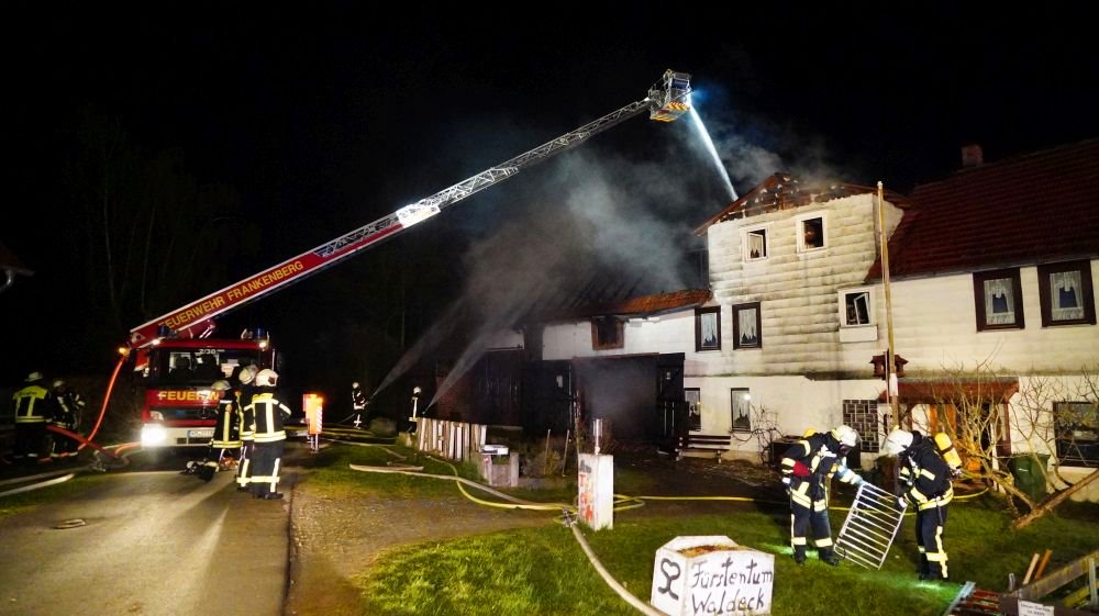 Die Wasserversorgung konnte aufrecht gehalten werden, weil in etwa 250 Meter Entfernung in einem Betrieb eine Wasser-Zisterne zur Verfügung stand. Die zwei Bewohner wurden zum Glück nicht verletzt, sie konnten das Haus rechtzeitig verlassen. Das Haus gilt aktuell als unbewohnbar. De beiden betroffenen Personen wurden zunächst für die kommenden zwei Tage untergebracht, danach müsse man weitersehen, so der Einsatzleiter. Was genau zu dem Brand führte, steht aktuell noch nicht fest. Zum Einsatz kamen die Ortfeuerweheren von Lichtenfels sowie die Feuerwehr aus Frankenberg mit insgesamt etwa 95 Einsatzkräften. Nach Angaben der Polizei wird der Sachschaden auf rund 100.000 Euro geschätzt.