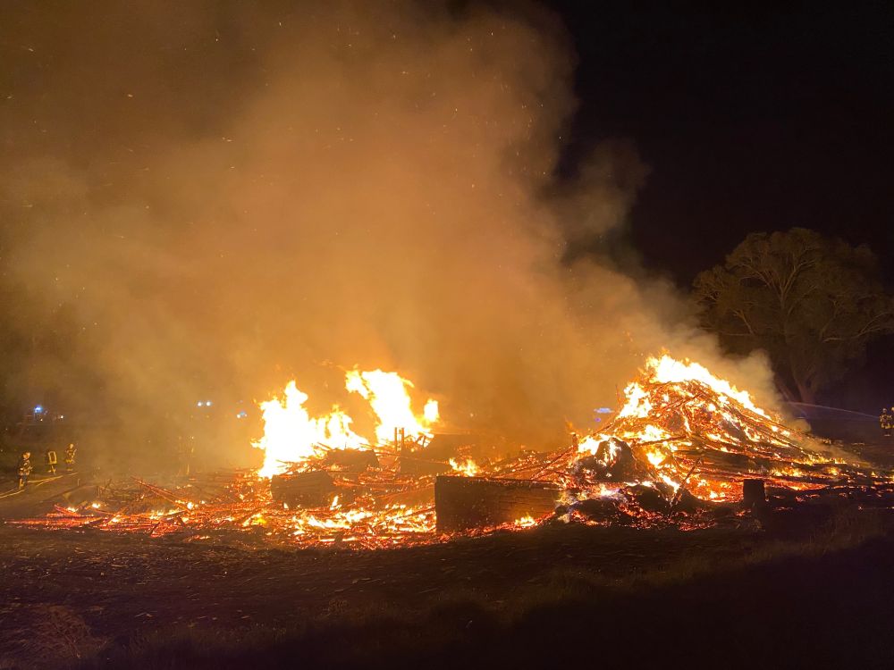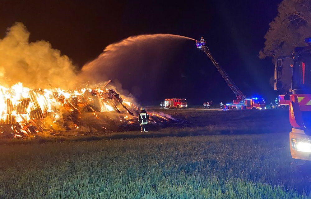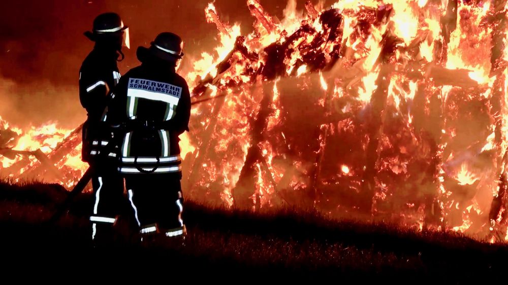 Schwalmstadt – In der Feldgemarkung zwischen Ziegenhain und Ransbach im nordhessischen Schwalm-Eder Kreis, brannte am späten Mittwochabend eine Feldscheune vollständig ab. Verletzt wurde glücklicherweise niemand. Die Brandursache und Schadenshöhe konnte vor Ort nicht abschließend ermittelt werden. Bei Ankunft der ersten Einsatzkräfte stand die Scheune bereits in Vollbrand. Nur wenig später krachte das ganze Gebäude in sich zusammen.