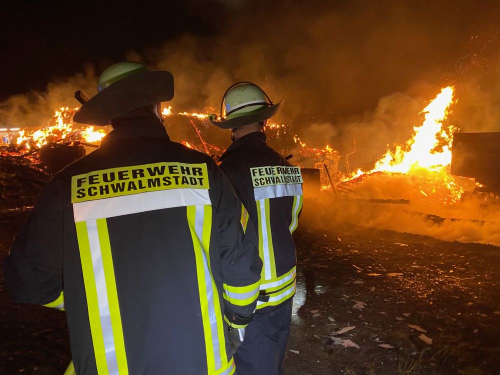 Strohballen, Holz, Ladewagen und verschiedene landwirtschaftliche Maschinen fielen dem Feuer zum Opfer und wurden vollständig zerstört. Da die Scheune nicht mehr zu retten war, beschränken sich die Löscharbeiten auf die Sicherung der direkten Umgebung. Schwierig gestalteten sich die Löscharbeiten aufgrund der Wasserversorgung. Die Einsatzkräfte mussten das Wasser über eine lange Wegstrecke herbeiführen. Neben einer Rettungswagenbesatzung, der Polizei Schwalmstadt und der Kreisbrandinspektorin Tanja Dittmar, waren 110 Feuerwehreinsatzkräfte aus Ziegenhain, Treysa, Niedergrenzebach, Trutzhain, Michelsberg und Allendorf unter der Einsatzleitung von Stadtbrandinspektor Thomas Thiel vor Ort im Einsatz.