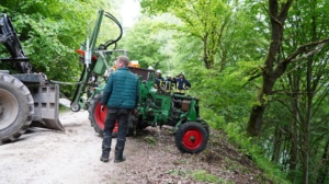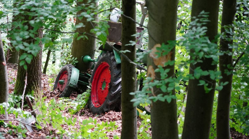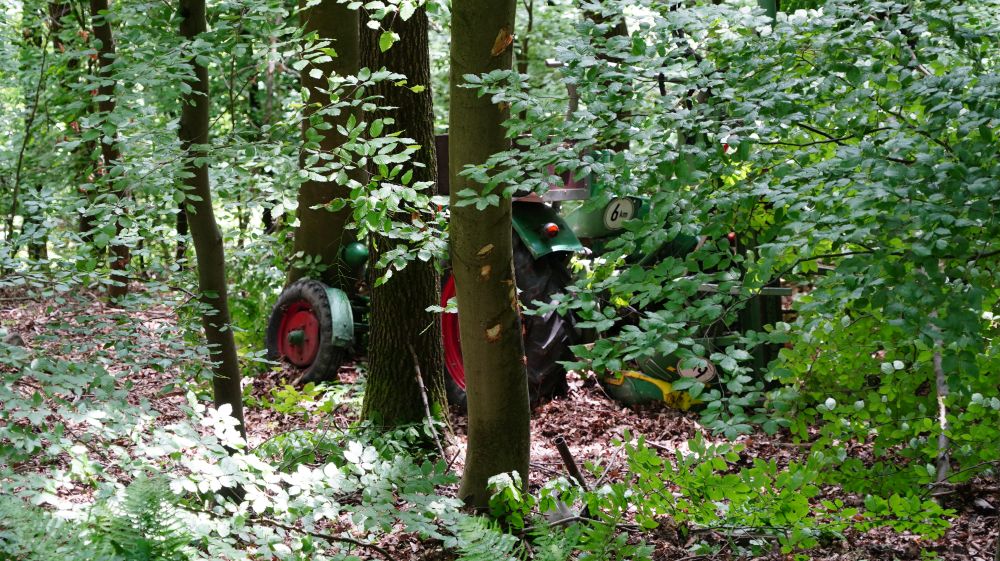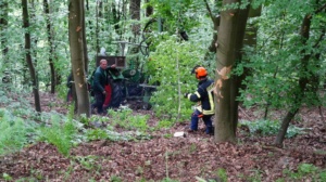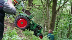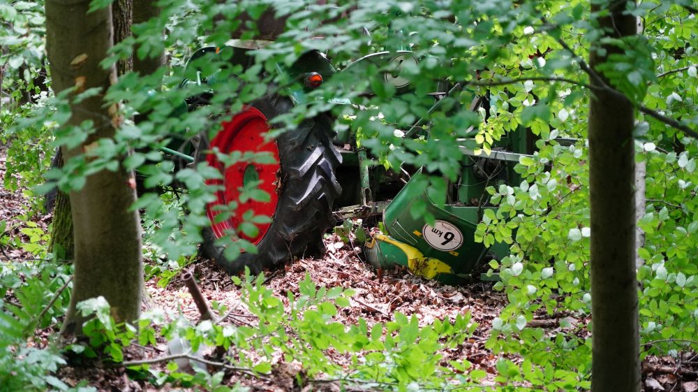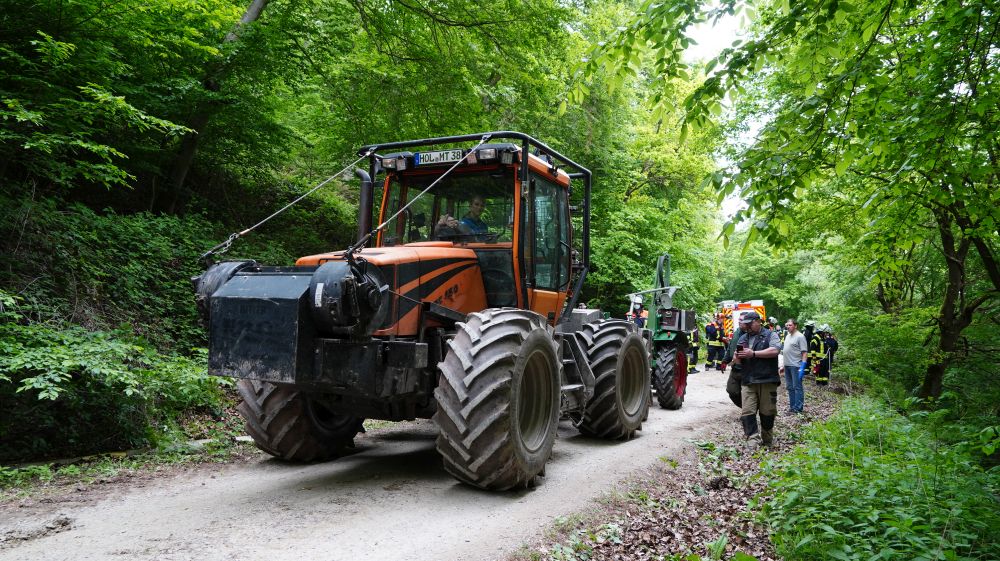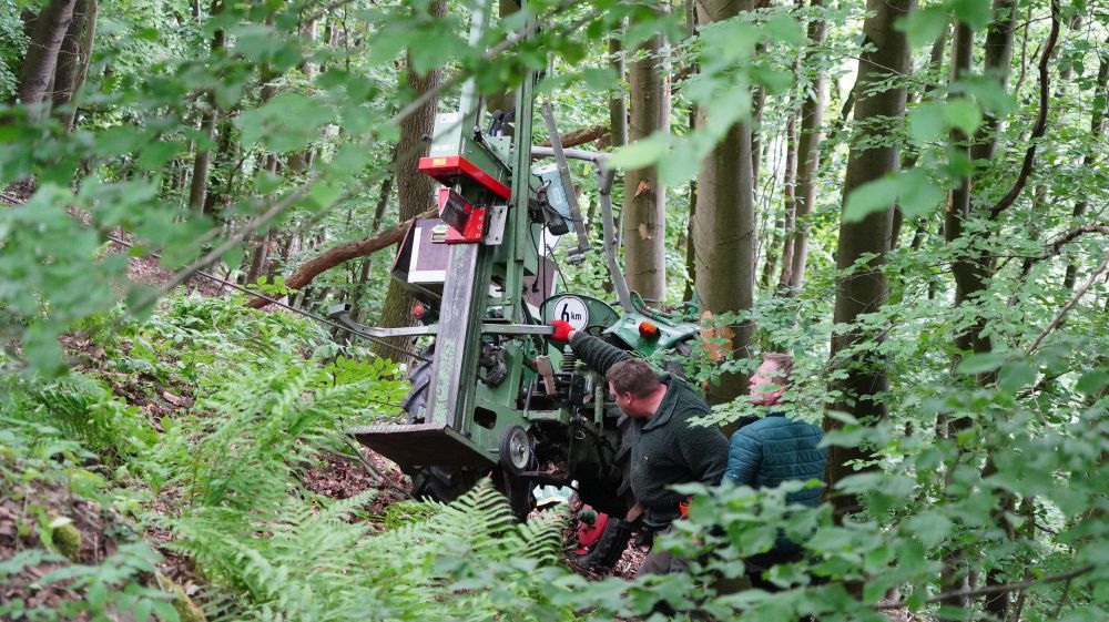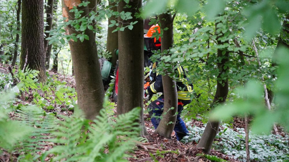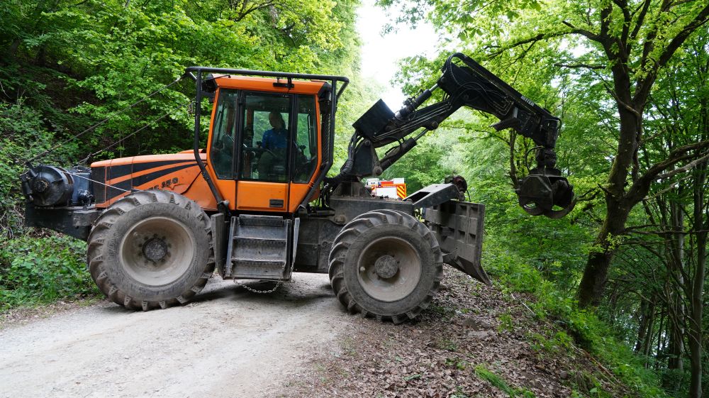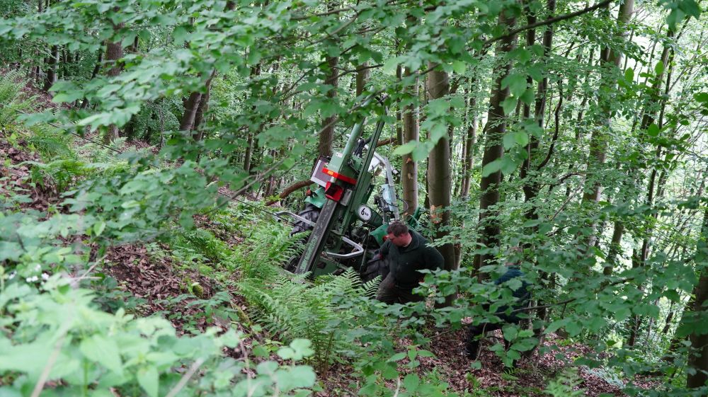 40 Meter in die Tiefe – Traktor kommt im Wald von Straße ab