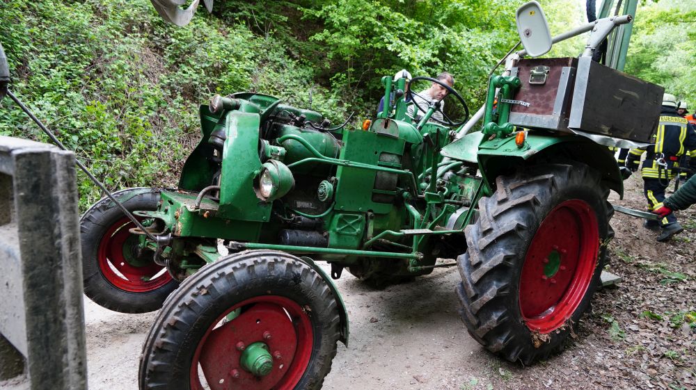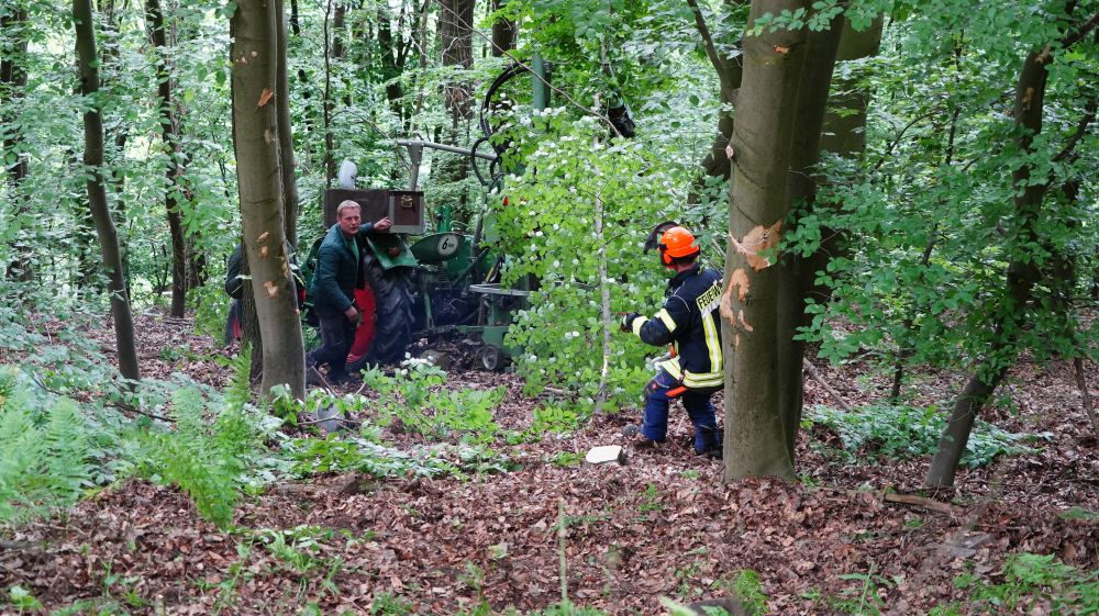 Bad Karlshafen – Am Mittwoch kam es gegen 10.30 Uhr zu einem Verkehrsunfall mit einem Traktor in Bad Karlshafen. Aus bislang noch unbekannten Gründen kam der Fahrer in einem Waldgebiet an der Hessisch-Niedersächsischen Grenze von der Fahrbahn ab. Es fuhr rund 40 Meter einen Abhang hinunter und krachte schlussendlich gegen einen Baum. Der Fahrer konnte sich noch selbst befreien und versuchte die Böschung hinauf zu klettern, was ihm jedoch nicht mehr gelang, er blieb rund 15 Meter vor dem Ende der Böschung liegen.