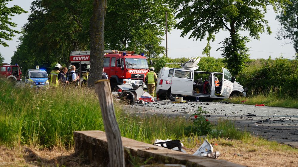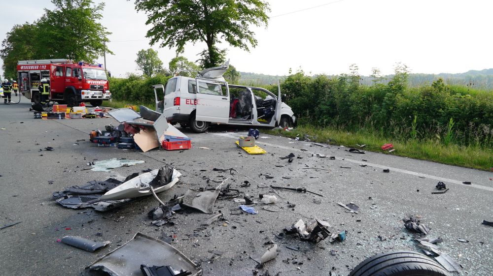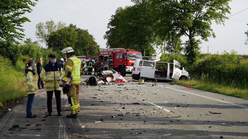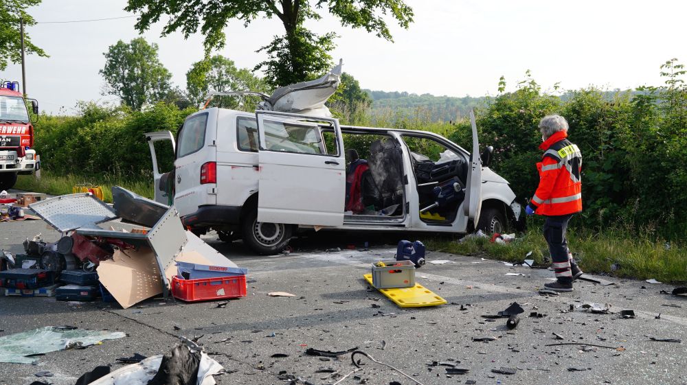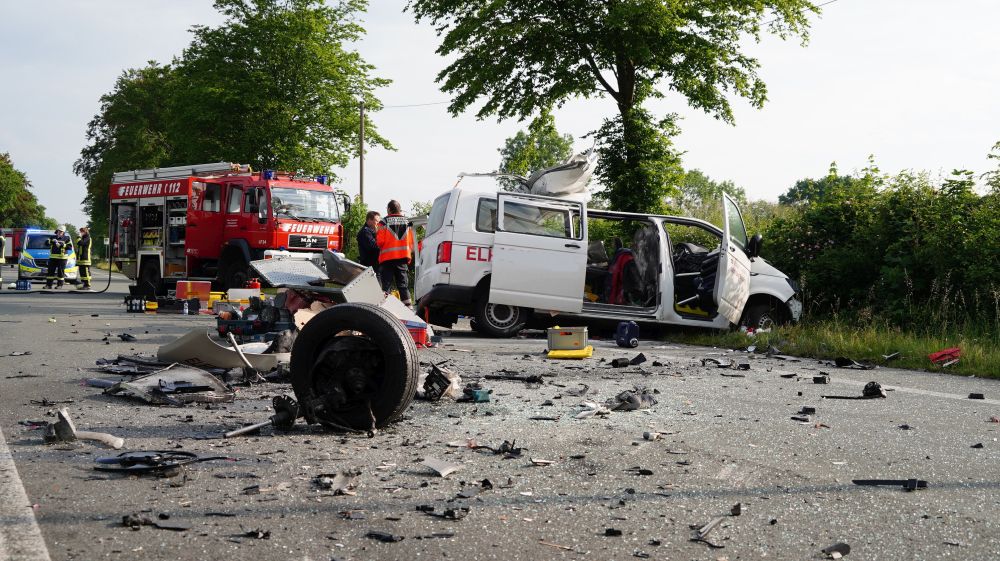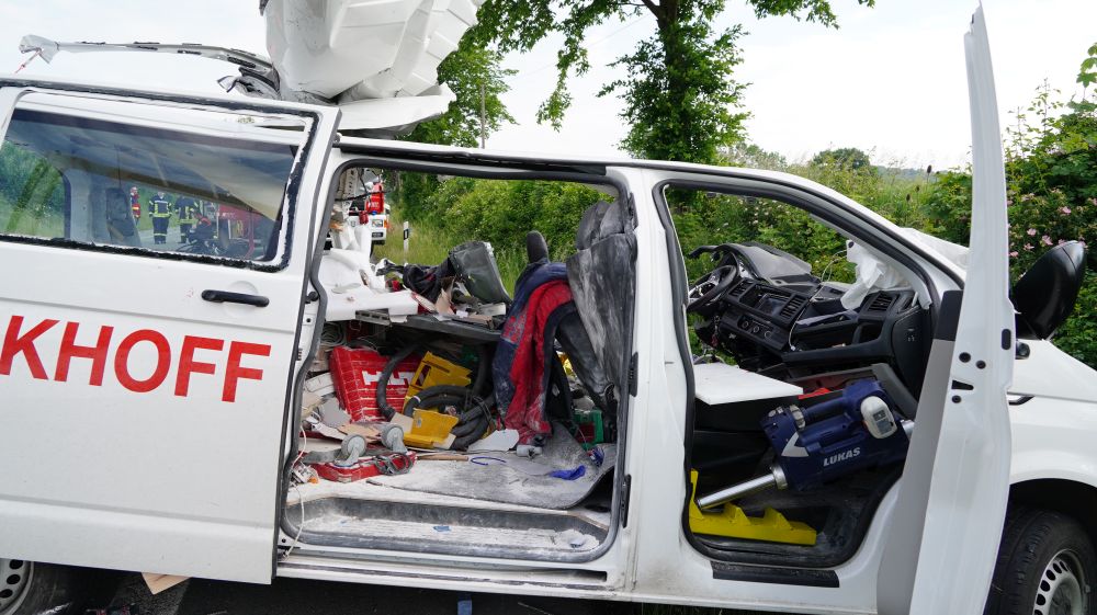 Nach einer Erstversorgung an der Unfallstelle, wurde der Fahrer mit dem Rettungshubschrauber in ein Krankenhaus geflogen. Sein Beifahrer wurde ebenfalls schwer verletzt. Für den 29-Jährigen Transporter-Fahrer kam jede Hilfe zu spät, er verstarb noch an der Unfallstelle. Ein Gutachter wurde zur Klärung der Unfallursache angefordert. Die Landstraße war für mehrere Stunden voll gesperrt. Neben Polizei, Feuerwehr und Rettungsdienst war auch das PSU-Team im Einsatz (psychosoziale Unterstützung), um im Nachgang mit den Einsatzkräften zu sprechen.