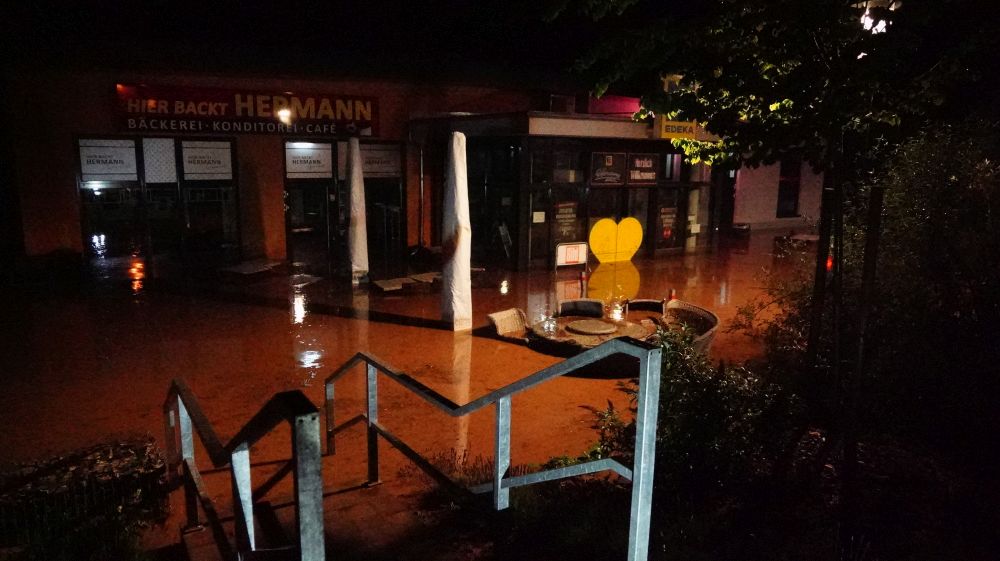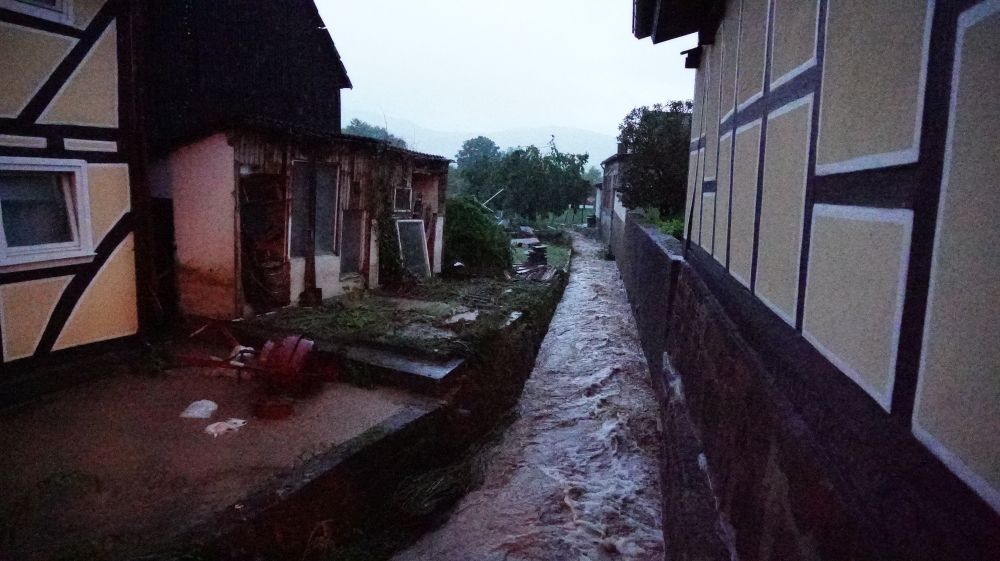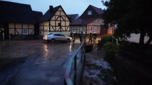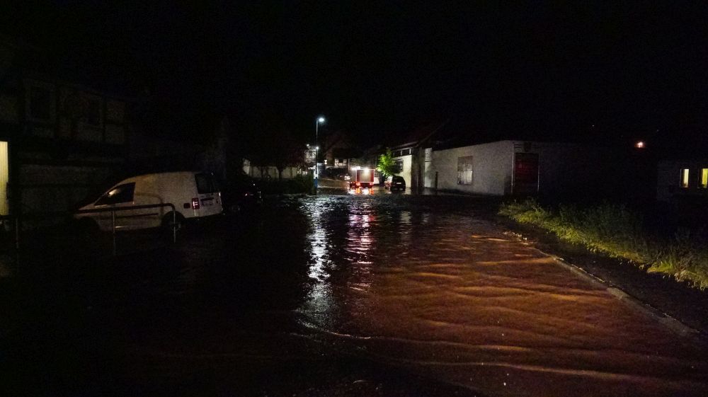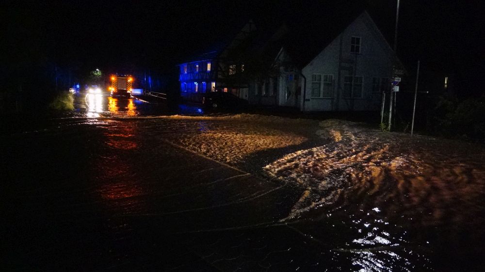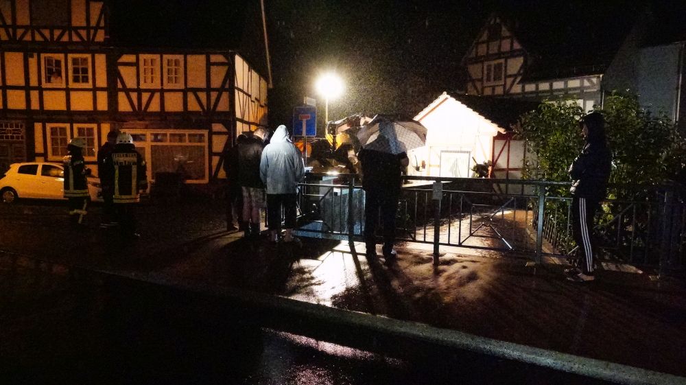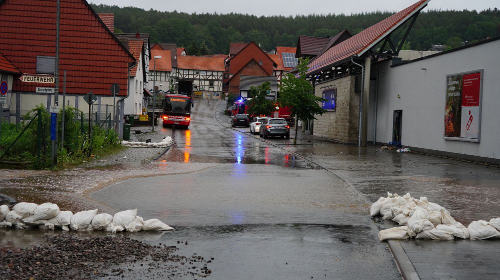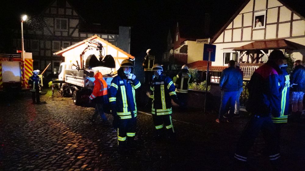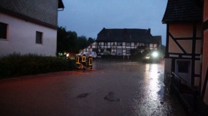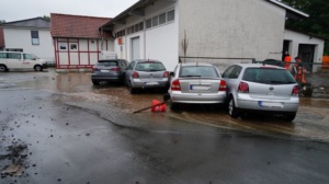In der Nacht von Sonntag auf Montag tobte sich erneut ein Unwetter in Nordhessen aus. Bis in die frühen Morgenstunden waren die Einsatzkräfte unterwegs. In Helsa war der Bach übergelaufen, weil angeschwemmtes Holz und Geröll das Wasser aufgestaut hatte. Mit einem Greifarm wurde das Material aus dem Bach gehoben und abtransportiert. Dennoch sind mehrere Keller vollgelaufen. In Nieste trat ebenfalls der Bach über das Ufer und sorgte für absolutes Chaos. Ein Einkaufsmarkt wurde geflutet, was erheblichen Schaden verursachte. Das Feuerwehrgerätehaus lief ebenfalls voll und machte Einsatzklamotten und Spinde der Kameraden vorerst unbrauchbar. Die vor der Halle geparkten Fahrzeuge wurden von den Wassermassen angehoben und zur Seite geschoben. In Witzenhausen Gertenbach sammelte sich das Wasser in der Ortschaft und sorgte für Schlamm und voll gelaufene Keller. In Lohfelden kümmerten sich die Kameraden um das befüllen von Sandsäcken um die Einsatzkräfte mit dem Nötigsten zu versorgen.