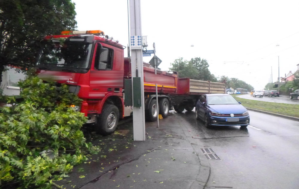 Der aus Reinhardshagen stammende 27-jährige Fahrer des dahinterfahrenden Lkw wiederum erkannte aus noch unbekannten Gründen nicht rechtzeitig, dass der Polo bremste. Anschließend geriet der Lkw mit Anhänger nach rechts von der Fahrbahn ab. Dabei streifte er den Polo im Heckbereich, geriet auf den Gehweg, überfuhr einen kleinen Baum, zerstörte zwei Verteilerkästen und kam letztlich zum Stehen. Der aus Fuldatal stammende 34 Jahre alte Fahrer des Polos und seine beiden Insassinnen, zwei 29 und 30 Jahre alten Frauen aus Kassel, wurden bei dem Zusammenstoß leicht verletzt und mit Rettungswagen vorsorglich in Kasseler Krankenhäuser gebracht. An dem Lkw war ein Schaden im Frontbereich von rund 5.000 Euro entstanden. Den Schaden im Heckbereich des Polos beziffern die Beamten auf weitere 5.000 Euro. Zudem waren die Verteilerkästen, ein Kasten für die Ampelanlage im dortigen Kreuzungsbereich und ein Kasten der Städtischen Werke, völlig zerstört worden. Dieser Schaden beläuft sich auf rund 25.000 Euro. Aufgrund des Unfalls mussten die beiden Fahrstreifen der Ihringshäuser Straße in Richtung Innenstadt zeitweise voll gesperrt werden. Die Unfallstelle war gegen 12:50 Uhr geräumt.