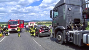 Bad Zwesten – Zu einem schweren Auffahrunfall kam es am frühen Dienstagnachmittag auf der B 3 in Höhe Oberurff. Ein LKW-Fahrer übersah den verkehrsbedingt stehenden Verkehr und krachte in das Stauende. Dabei wurden zwei Personen schwer, glücklicherweise aber nicht lebensbedrohlich verletzt. Eine Person musste von der Feuerwehr aus dem Fahrzeug befreit werden. Ein bisher unbekannter Verkehrsteilnehmer befuhr die Bundesstraße 3 von Jesberg in Richtung Bad Zwesten.