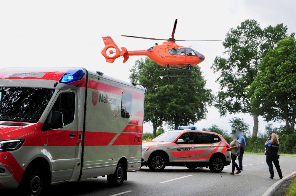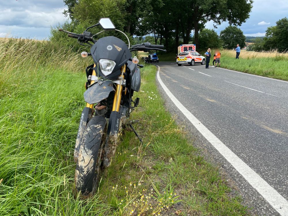 Jesberg – Schwere, glücklicherweise aber keine lebensbedrohlichen Verletzungen, zog sich ein 17-jähriger Kradfahrer aus Bad Zwesten bei einem Alleinunfall zwischen Jesberg und Reptich zu. Neben einem Rettungswagen und einem Notarzt war auch der Rettungshubschrauber Christoph-7 vor Ort im Einsatz. Nach polizeilichen Informationen von der Unfallstelle war vermutlich nicht angepasste Geschwindigkeit der Grund für einen Verkehrsunfall mit einem Leichtkraftrad auf L3149.