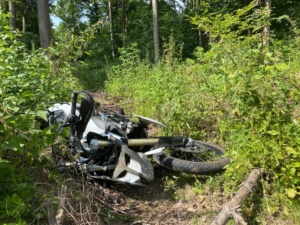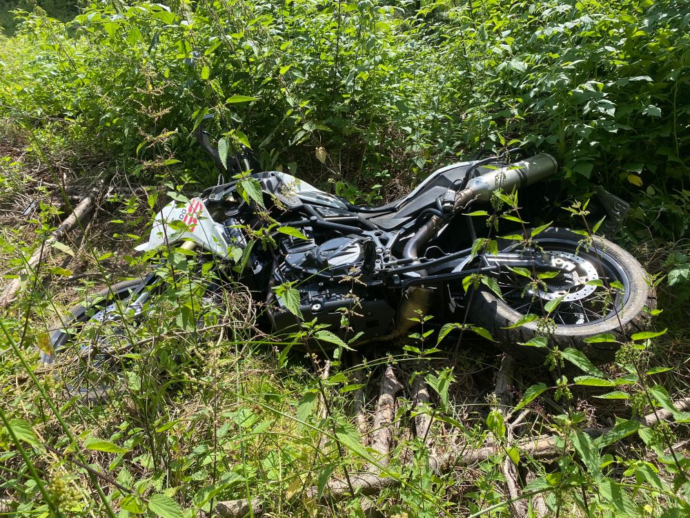 Sein Motorrad schleuderte knapp 50 Meter weiter und kam schwer beschädigt auf einem Wirtschaftsweg zum liegen. Trotz sofortiger Hilfe durch Ersthelfer und der weiteren Versorgung durch den Rettungsdienst, verstarb der 31-jährige Mann aus Angelburg an der Unfallstelle. Ein angeforderter Rettungshubschrauber drehte unverrichteter Dinge kurz vor Haina wieder ab. Aufgrund des steilen und unwegsamen Geländes wurde zudem die Feuerwehr zur rettungsdienstlichen Unterstützung an die Einsatzstelle bestellt. Die L3077 war während der Rettungs-,Bergungs- und Gutachtermaßnahmen für rund drei Stunden für den Verkehr voll gesperrt. Am Motorrad entstand Totalschaden. Im Einsatz waren neben der Polizei Frankenberg, zwei Rettungswagen, ein Notarzt, ein Rettungshubschrauber, die Feuerwehren aus Haina (Kloster), Löhlbach und Halgehausen. (mpu)