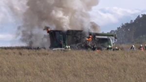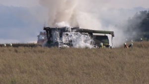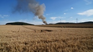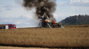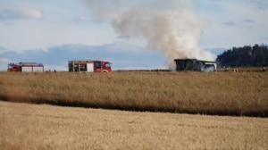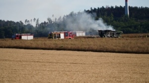 Zierenberg – Am Donnerstagabend gegen 18.45 Uhr wurde die Feuerwehr Zierenberg mit Ortsteilen zu einer brennenden Landmaschine in die Gemarkung von Oberelsungen alarmiert. Bei Ankunft der Einsatzkräfte stand ein Mähdrescher auf einem Feld zwischen Oberelsungen und Nothfelden im Vollbrand. Die Rauchsäule war kilometerweit zu sehen. Ein Übergreifen der Flammen auf das angrenzende Feld konnte die Feuerwehr verhindern. Mit Hilfe eines weiteren Tanklöschfahrzeugs der Feuerwehr Wolfhagen wurde ein Pendelverkehr eingerichtet.