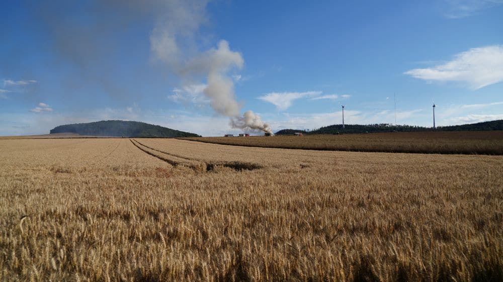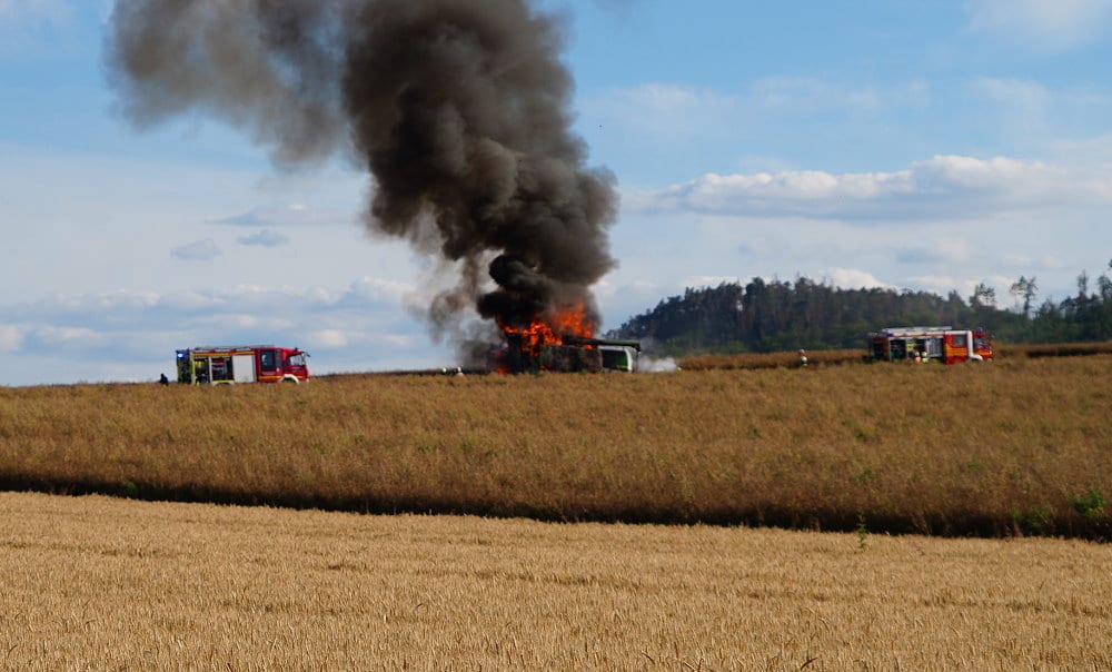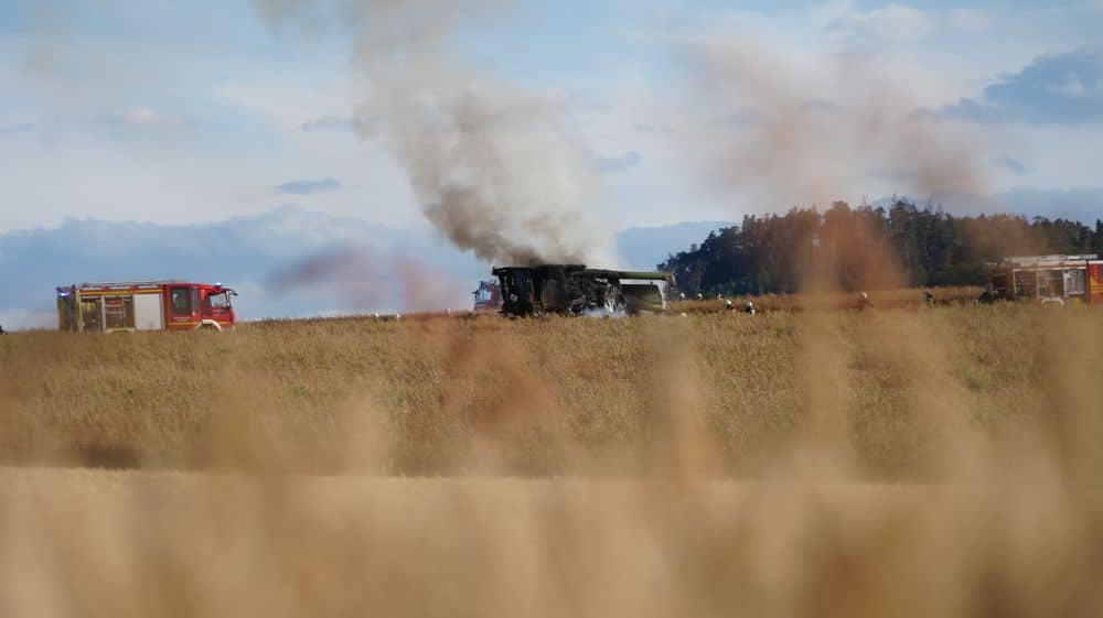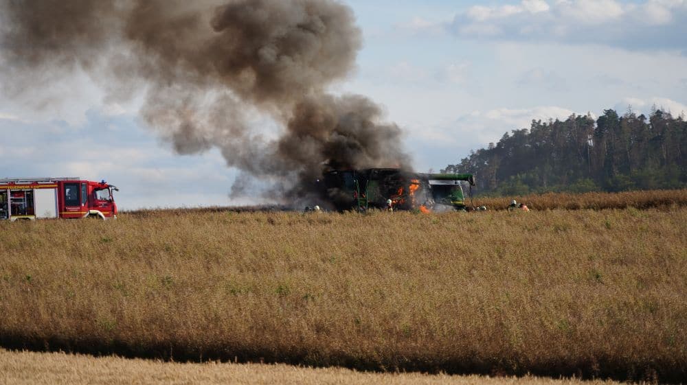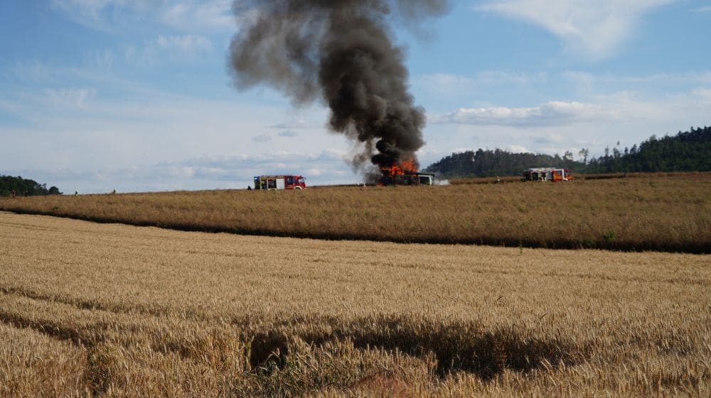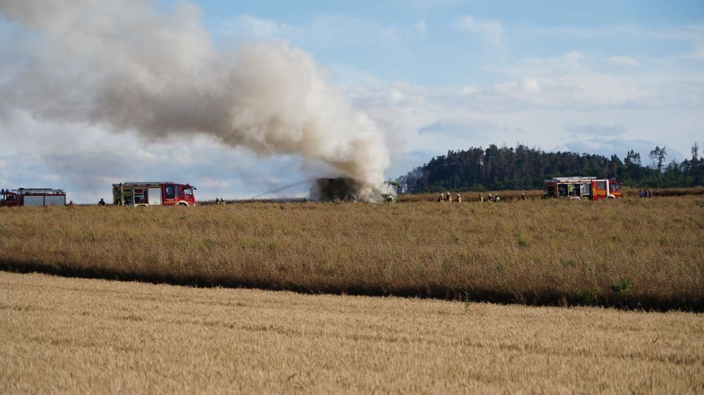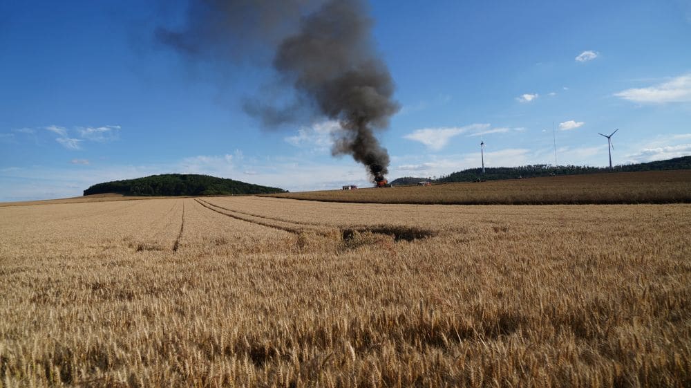 Zierenberg – Am Donnerstagabend gegen 18.45 Uhr wurde die Feuerwehr Zierenberg mit Ortsteilen zu einer brennenden Landmaschine in die Gemarkung von Oberelsungen alarmiert. Bei Ankunft der Einsatzkräfte stand ein Mähdrescher auf einem Feld zwischen Oberelsungen und Nothfelden im Vollbrand. Die Rauchsäule war kilometerweit zu sehen. Ein Übergreifen der Flammen auf das angrenzende Feld konnte die Feuerwehr verhindern. Mit Hilfe eines weiteren Tanklöschfahrzeugs der Feuerwehr Wolfhagen wurde ein Pendelverkehr eingerichtet.