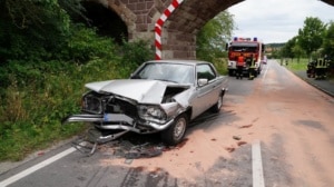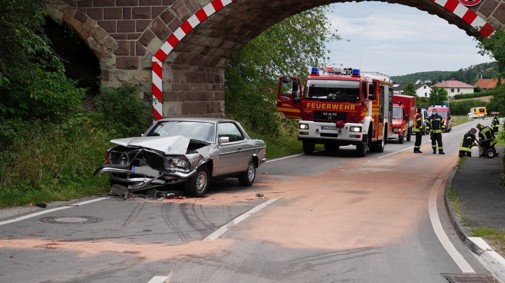 Zierenberg – Zu einem Verkehrsunfall kam es am Samstag gegen 17 Uhr bei Oberelsungen. Ein roter VW Polo besetzt mit drei Personen, befuhr die L3214/Am Bahnhof von Zierenberg in Fahrtrichtung Oberelsungen. Aus noch nicht geklärter Ursache kam das Fahrzeug in einer Rechtskurve in den Gegenverkehr und prallte in Höhe der Bahnbrücke mit einem Mercedes Oldtimer zusammen. Die alarmierte Feuerwehr Oberelsungen sicherte die Unfallstelle ab und nahm auslaufende Betriebsstoffe auf.