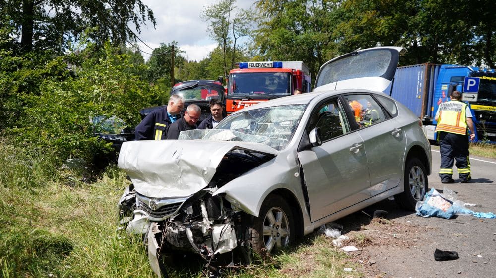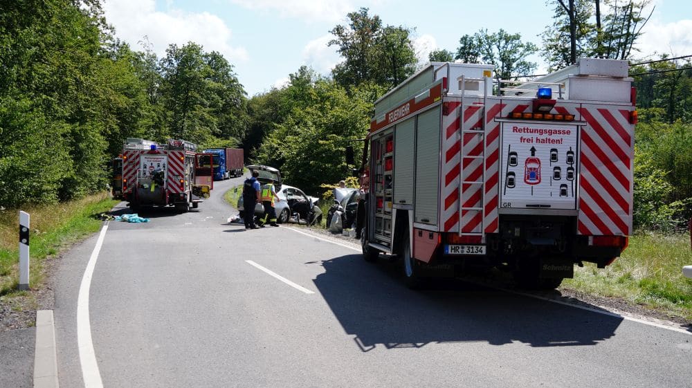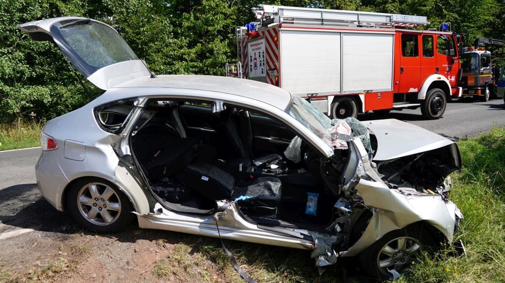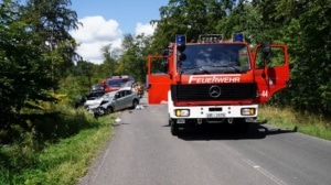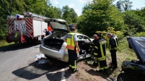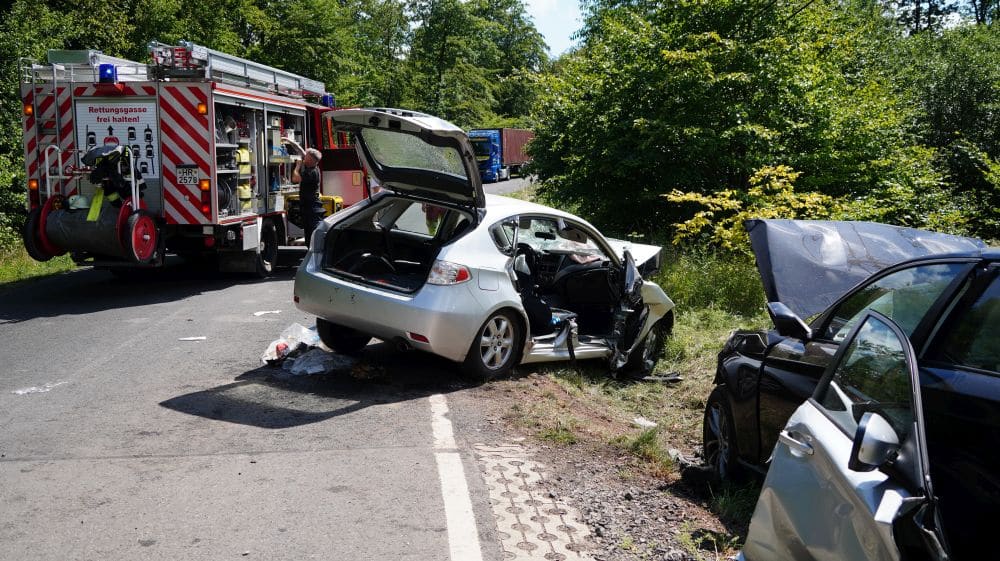Günsterode – Am Dienstag gegen 10:45 Uhr ereignete sich auf der L 3147 zwischen Hessisch Lichtenau und Günsterode ein schwerer Verkehrsunfall zwischen zwei Pkws im Begegnungsverkehr. Bei dem frontalen Zusammenstoß wurde eine 53-jährige Fahrerin schwer verletzt; ihre 88-Jährige Mitfahrerin wurde schwerst verletzt und daher mit dem Rettungshubschrauber ins Klinikum geflogen. Die 88-Jährige war in dem Fahrzeug eingeklemmt und musste aus diesem durch die Feuerwehr Melsungen befreit werden.