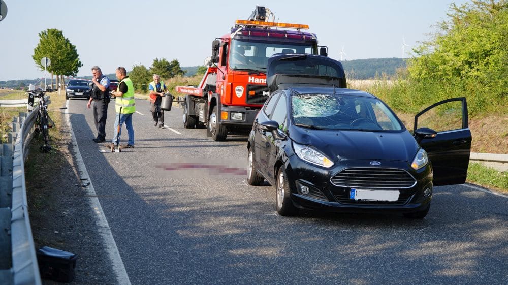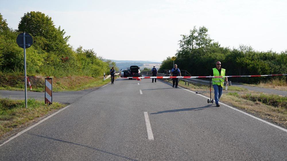 Zum Unfallzeitpunkt wollte der Fahrradfahrer die K 16 überqueren, um auf die gegenüberliegende Fahrbahnseite zu gelangen. Hierbei übersah er den PKW der 42-jährigen. Bei dem Zusammenstoß wurde der Fahrradfahrer von der rechten Fahrzeugfront des PKW erfasst. Der 86-jährige Mann zog sich durch den Zusammenstoß tödliche Verletzungen zu und verstarb nach versuchter Reanimation durch den alarmierten Notarzt noch an der Unfallstelle. Die Fahrzeugführerin erlitt einen Schock. Im Einsatz war auch der Rettungshubschrauber Christoph 7. Ein Sachverständiger ist mit der Erstellung eines Unfallgutachtens beauftragt. Die K 16 war bis 18:10 Uhr in beiden Richtungen voll gesperrt.