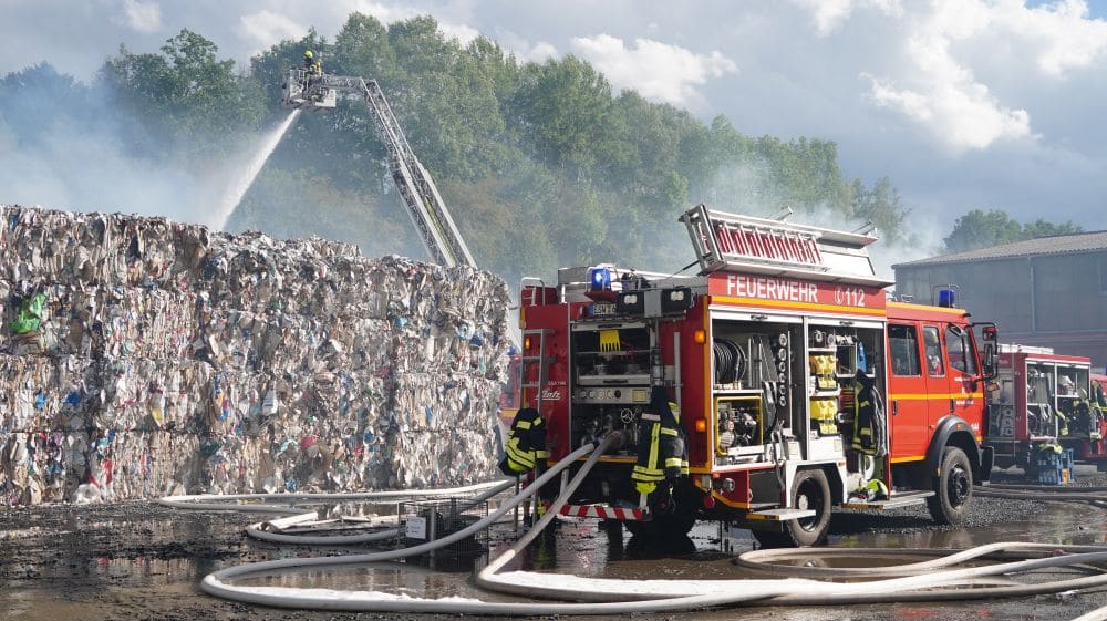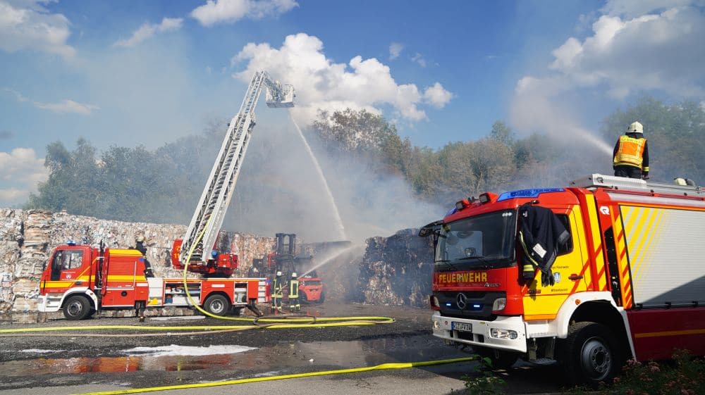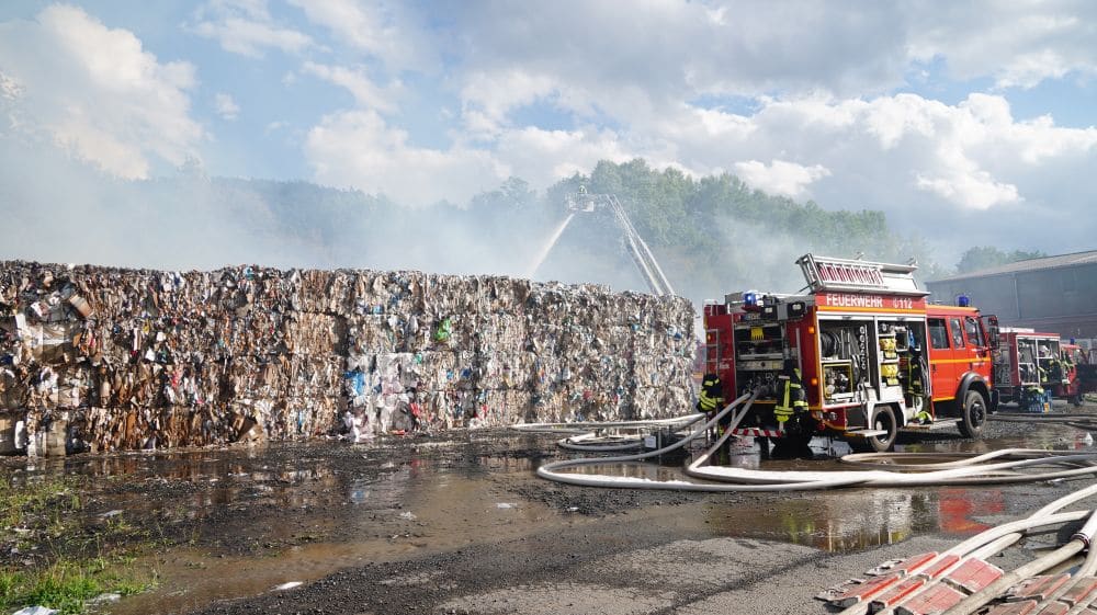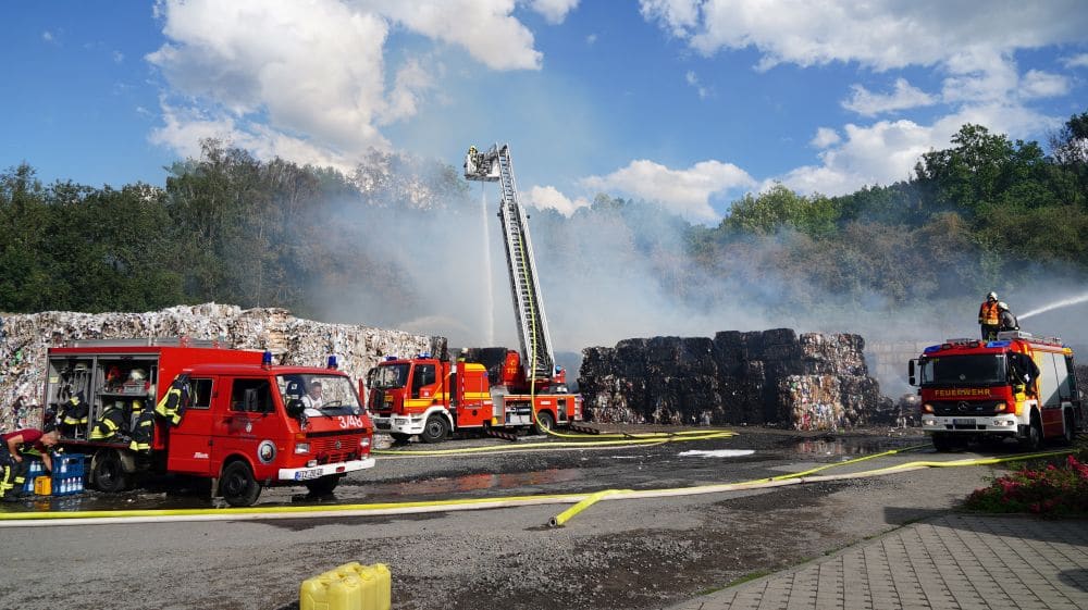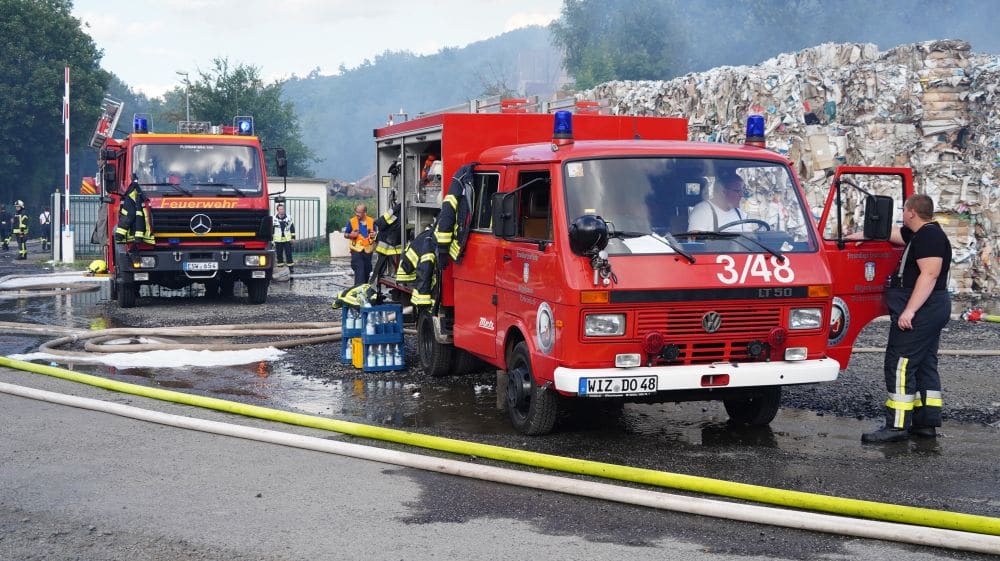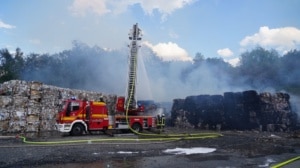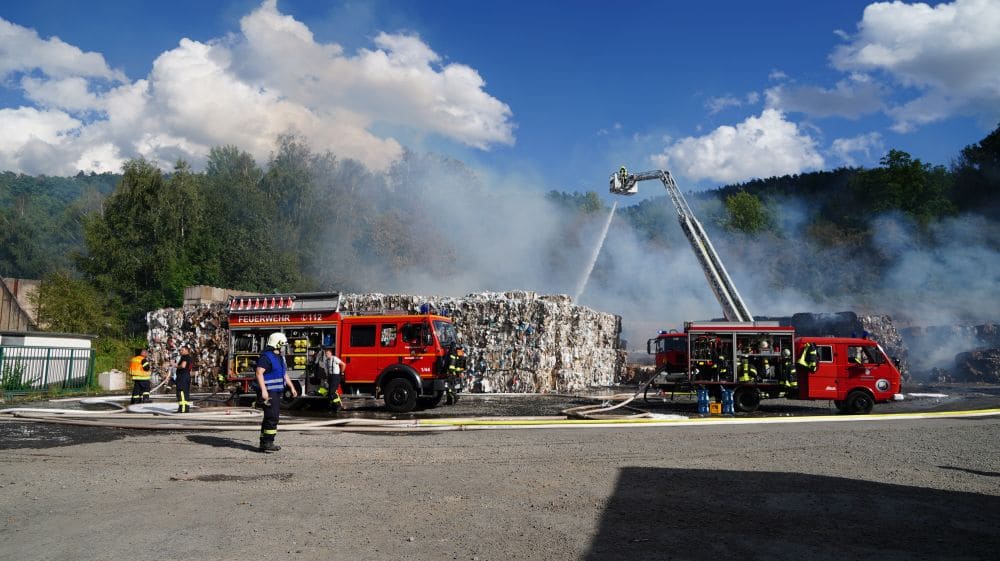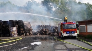 Witzenhausen – Am Samstagmittag gegen 12.30 Uhr wurde die Feuerwehr Witzenhausen zu einer ausgelösten BMA (Brand Melde Anlage) gerufen. Schon bei der Anfahrt kam die Rückmeldung aus der Leitstelle, dass bereits rund 50m² gepresstes Papier in Brand geraten waren.