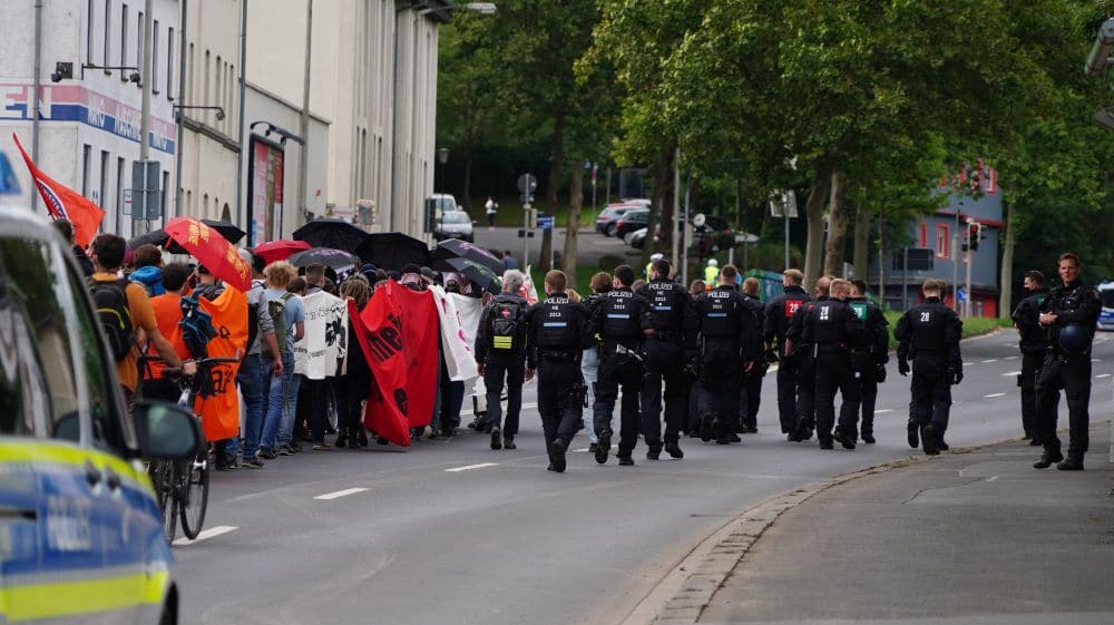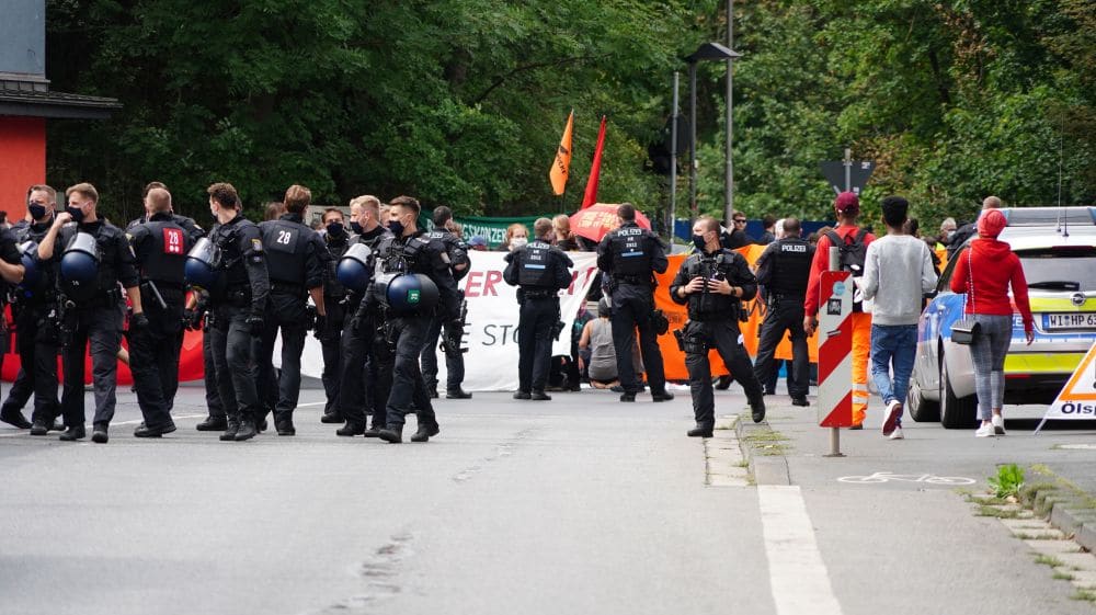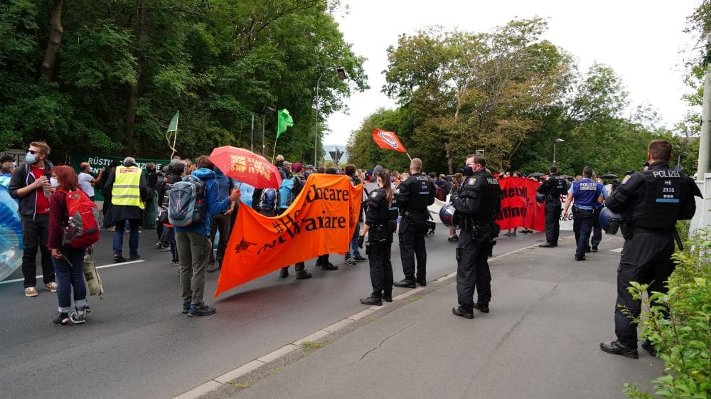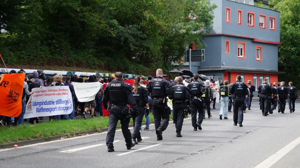 Kassel – Überall in Kassel verteilt findet man am Freitagmorgen Polizeikräfte. Hintergrund ist ein Protest gegen die Rüstungsindustrie. Die Firma Krauss Maffei Wegmann kurz KMW stellt Waffen her, die unter anderem in Syrien und Libyen zum Einsatz kommen, so das Bündnis „Rheinmetall Entwaffnen“ die auch zu den Protesten aufgerufen hat. Die Demos werden sich den ganzen Tag hinziehen. Auf Grund dessen, dass die Protestaktionen sehr früh angekündigt wurden, konnte die Polizei rechtzeitig reagieren.
