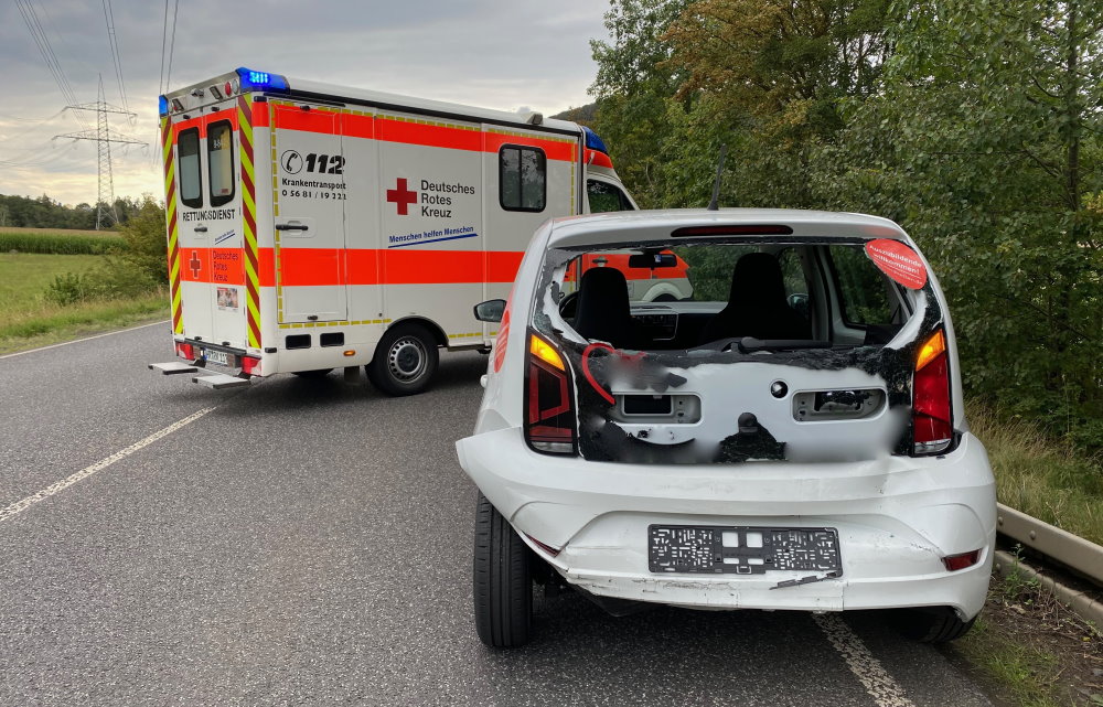 Eine folgende 19-jährige Frau aus Gilserberg erkannte die Situation vermutlich zu spät und krachte mit ihrem Audi A3 ins Heck des Schaumburgers. Durch den Aufprall wurden bei der 19-Jährigen alle Frontairbags ausgelöst. Der Schaumburger kam erst 100 Meter weiter mit einem Heckschaden zum Stillstand. Beide Fahrzeugführer, sowie eine Beifahrerin im Audi, wurden bei dem Unfall leicht verletzt und vom Rettungsdienst in das Krankenhaus nach Fritzlar transportiert. Im Einsatz waren zwei Rettungswagen, ein Notarzt sowie die Polizei. An beiden Fahrzeugen entstand vermutlich ein Totalschaden. Der Gesamtschaden wird auf 7.000 Euro geschätzt. Während der Rettungsmaßnahmen war die L3223 halbseitig gesperrt. (mpu)