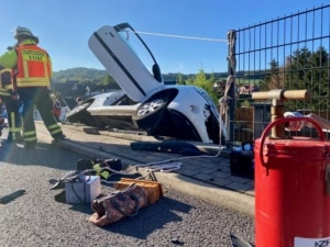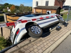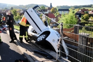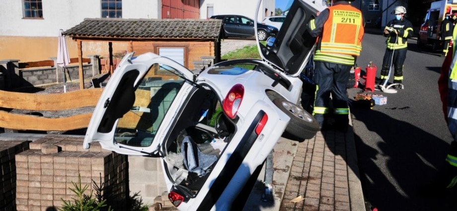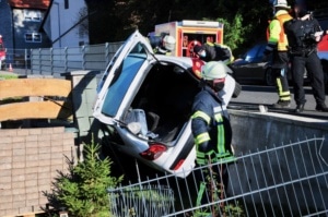 Frielendorf – Glück im Unglück hatte am Sonntagvormittag eine 81-jähriger Verkehrsteilnehmerin in der Ortsdurchfahrt von Großropperhausen. Aus bislang ungeklärten Umständen kam die Seniorin auf gerader Strecke nach links von der Fahrbahn ab, walzte einen Gartenzaun nieder und stürzte mit ihrem PKW eine rund ein Meter tiefe Mauer hinunter. Dabei kam das Fahrzeug nahezu auf der Fahrerseite zum Stillstand. Aufgrund der Fahrzeuglage konnte sich die Frau nicht selbständig aus ihrem Fahrzeug befreien.