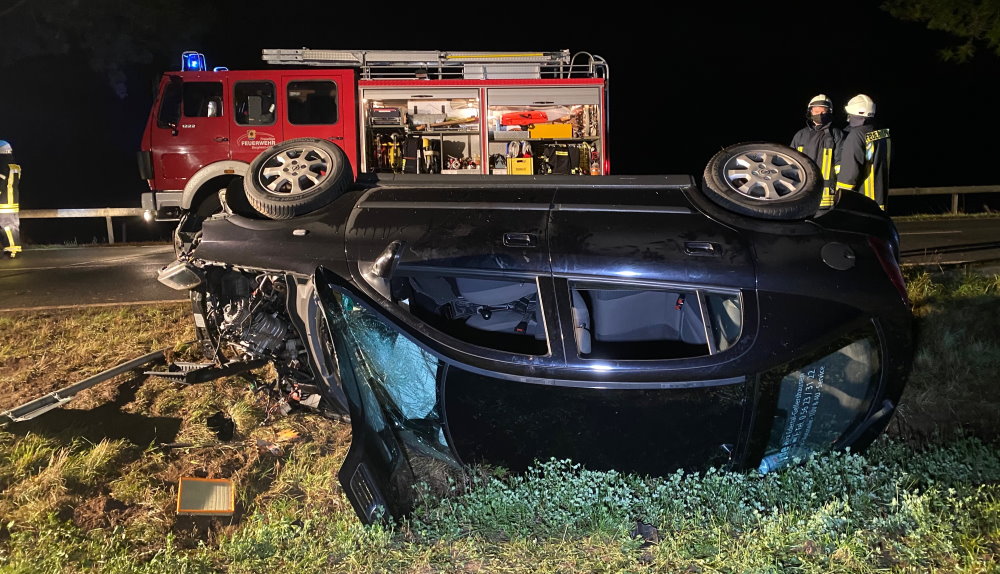Dabei überfuhr sie zunächst einen Leitpfosten, querte einen Graben und krachte gegen einen Wasserdurchlass. Durch den Aufprall drehte und überschlug sich das Fahrzeug bevor es auf der Fahrerseite entgegen der Fahrtrichtung zum liegen kam. Ersthelfer eilten der Frau zur Hilfe. Da zunächst von einer eingeklemmten Person ausgegangen wurde, rückte neben dem Rettungsdienst und einem Notarzt auch die Feuerwehr aus. Glücklicherweise konnte die Verletzte ihr Fahrzeug mit Hilfe von Ersthelfern verlassen, so dass keine hydraulischen Geräte zum Einsatz kamen. Der Rettungsdienst brachte die 19 Jährige nach ihrer Erstversorgung in ein Krankenhaus. Am Fahrzeug entstand Totalschaden. Den Sachschaden beziffert die Polizei Bad Wildungen nach erster Einschätzung auf 5000 Euro. Während der Rettungs- und Bergungsmaßnahmen war die B485 für eine Stunde voll gesperrt. Neben dem Rettungsdienst und der Polizei waren die Feuerwehren Bergheim-Giflitz, Buhlen und Hemfurth mit 30 Einsatzkräften vor Ort. (mpu)