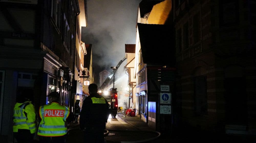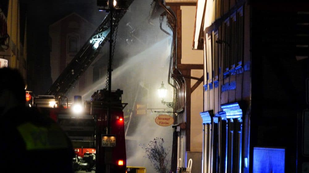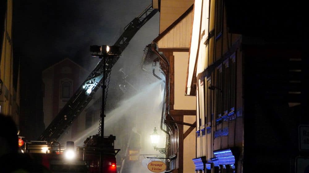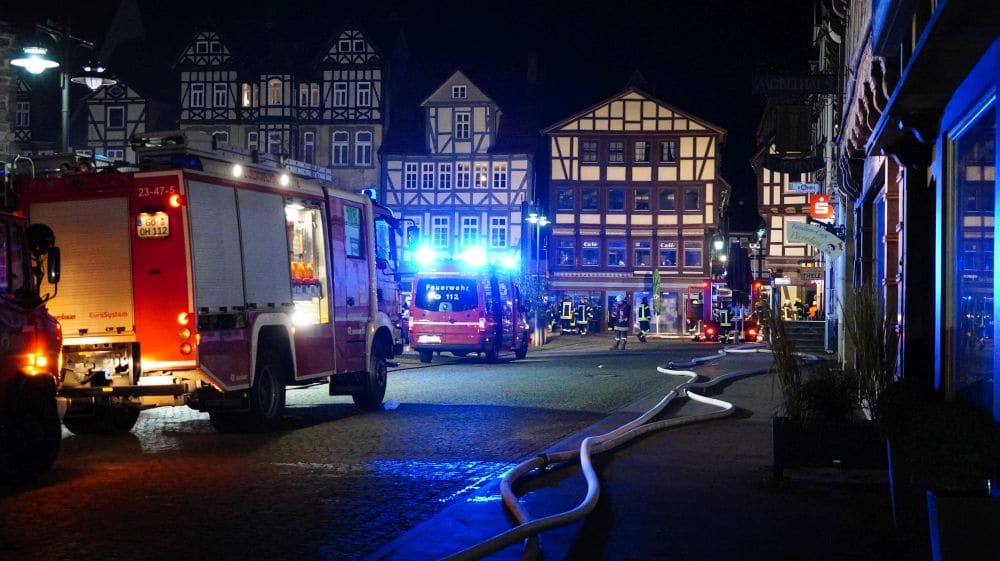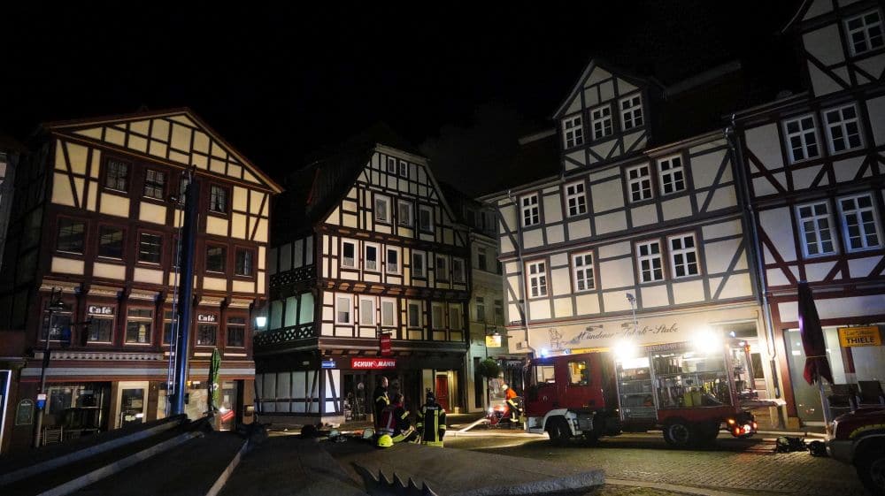 Hann. Münden (Niedersachsen) – In einem Geschäftshaus in der Altstadt von Hann. Münden kam es am Freitagabend gegen 19.35 Uhr aus bislang unbekannter Ursache zu einem Brand. Die Flammen griffen in der Folge auf mehrere benachbarte Fachwerkhäuser über. Nach letzten Informationen, waren drei Häuser betroffen. Verletzt wurde niemand.