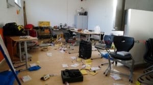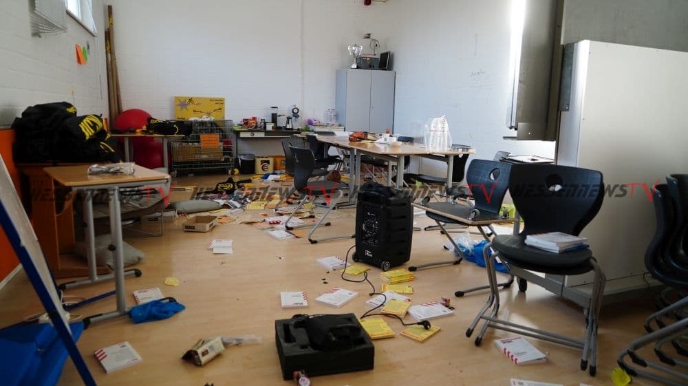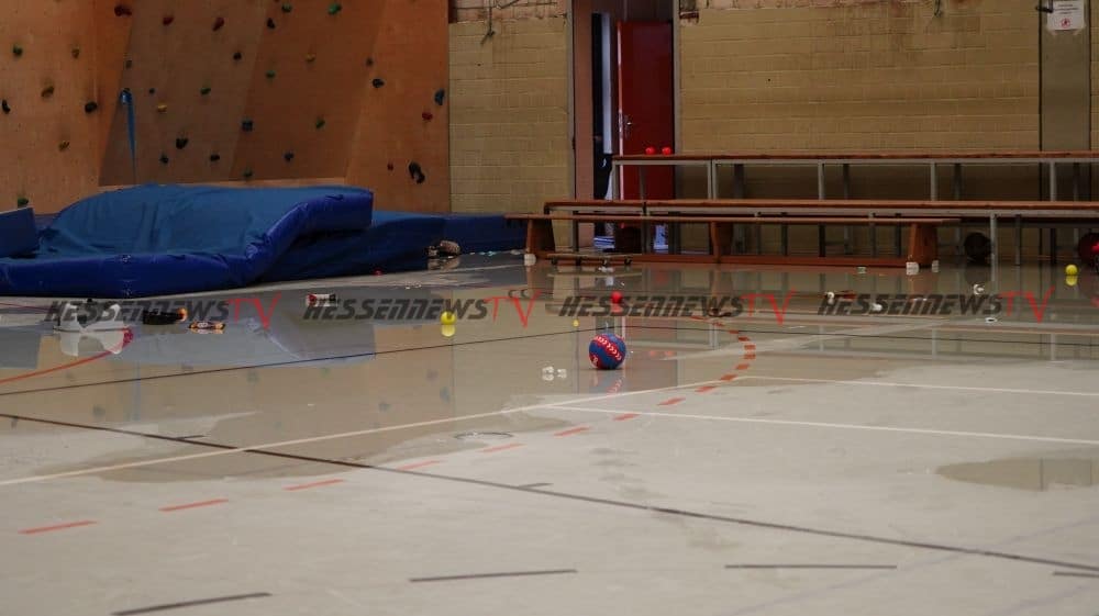 Wie die Polizei berichtet, drangen die Unbekannten von der Halle über eine Verbindungstür gewaltsam in das Lehrerzimmer der Schule ein und zerschlugen einen dort aufgefundenen Laptop und einen Beamer auf dem Hallenboden. Zudem zerstörten sie mutwillig zwei Notausgangschilder und entleerten einen Feuerlöscher in der Sporthalle. Darüber hinaus fixierten die Täter die Spülung der Herrentoilette und verstopften gleichzeitig mit Papiertüchern den Abfluss. Durch das ausgetretene Wasser wurde der Hallenboden erheblich in Mitleidenschaft gezogen. Wann die Sporthalle wieder genutzt werden kann, ist derzeit unklar.