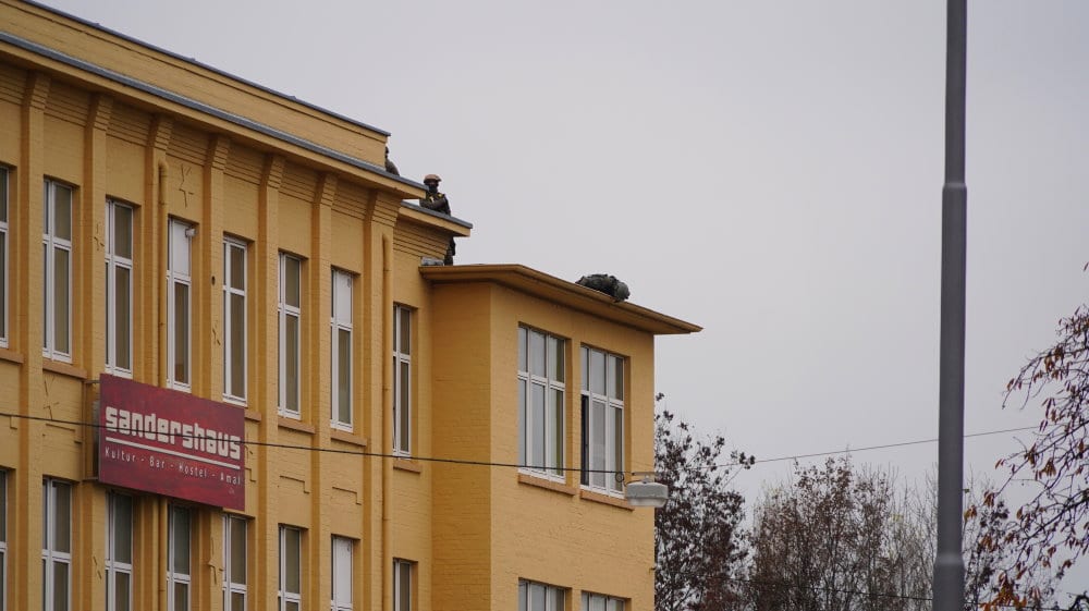Aus diesem Grund wurden Spezialeinheiten zur weiteren Lagebewältigung hinzugezogen. Der Einsatzbereich rund um das Haus in der Sandershäuser Straße wurde abgesperrt. Während die Polizei durch speziell geschulte Beamte die Gespräche mit der 38-Jährigen suchte, gelang gegen 9:45 Uhr die Festnahme der Frau durch das SEK. Sie wurde dabei leicht verletzt. Ihre beiden Kinder konnten unverletzt in Obhut genommen werden. Die Frau wird nun zur weiteren psychiatrischen und physischen Versorgung in ein Krankenhaus gebracht. Neben Polizei und Rettungsdienst wurde auch die Feuerwehr dazu gerufen. Sie bauten vor dem Gebäude ein Sprungpolster auf.