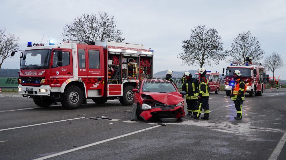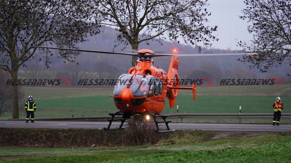 Dabei wurden beide Personen verletzt. Der 74-Jähriger im weißen Renault wurde im Fahrzeug eingeschlossen und musste von der Feuerwehr befreit werden. Nach einer Erstversorgung an der Unfallstelle, wurden die Verletzten in ein Krankenhaus eingeliefert. Ein Gutachter wurde in die Unfallermittlungen hinzugezogen. Im Einsatz war die Feuerwehr Bad Emstal mit 37 Einsatzkräften. Neben Polizei und Rettungsdienst war auch der Rettungshubschrauber Christoph 7 vor Ort. Die Bundesstraße war bis 17.20 Uhr voll gesperrt.
