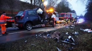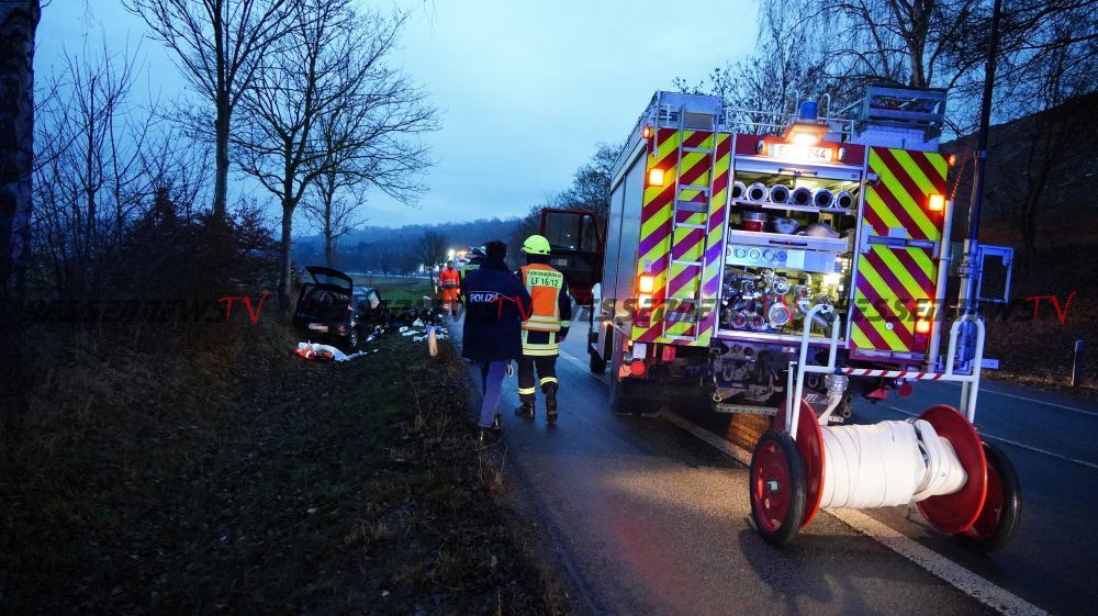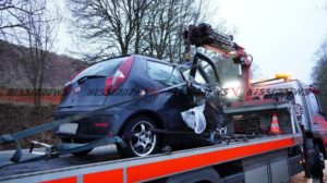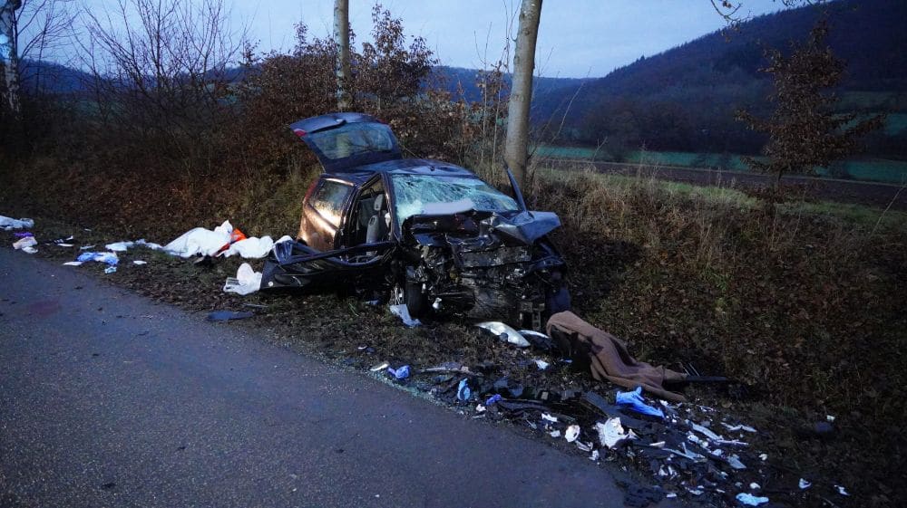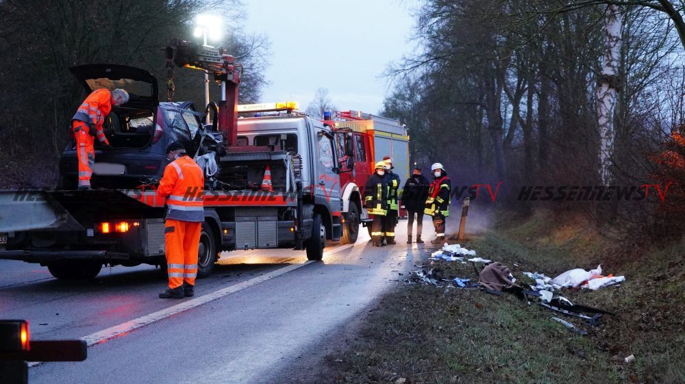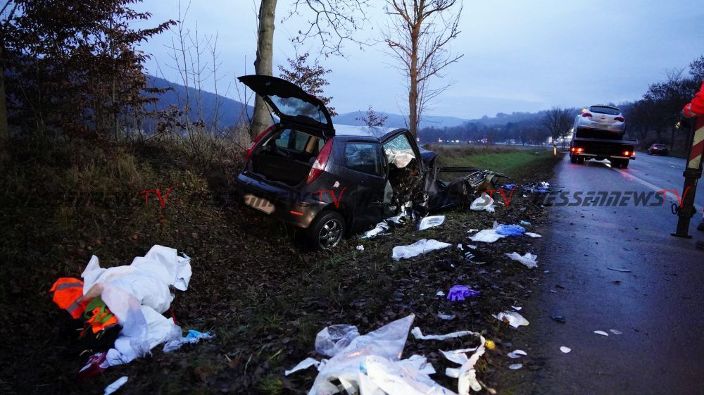 Sontra – Auf der B27 zwischen Sontra und Wichmannshausen kam es gegen 04.50 Uhr zu einem schweren Verkehrsunfall, bei dem zwei Menschen ums Leben gekommen sind. Nach bisherigen Erkenntnissen war ein Fiat besetzt mit fünf Personen in Richtung Norden unterwegs und hatte in Höhe der Autobahnbaustelle noch vor dem dortigen Kreisverkehr ein vorausfahrendes Fahrzeug überholt.