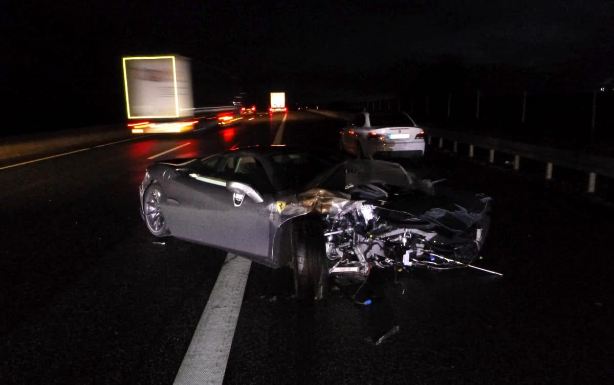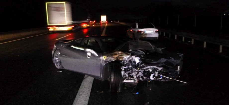 Fulda – Ein 43-jähriger aus Baden-Würtemberg bestellte sich vor zwei Jahren seinen Traumwagen. Bei dem Sportwagen handelt es sich um ein Unikat. Von der Sitznaht bis zur Lackierung wurde alles individuell gestaltet. Am Samstag nahm der Besitzer sein Fahrzeug in Berlin in Empfang. Auf seinem Heimweg kam es auf der A5, Gemarkung Gemünden, dann zu dem folgenschweren Unfall. Das Fahrzeug war mit Sommerreifen ausgerüstet. Auf regennasser Fahrbahn und mit vermutlich nicht angepasster Geschwindigkeit verlor der Fahrer die Kontrolle über seinen 720-PS starken Boliden. Zuerst kollidierte er mit der Betongleitwand. Dabei riss ein Hinterrad ab und wurde in den Gegenverkehr geschleudert. Hier traf das Rad einen Kleinbus, der auf der A5 in Richtung Norden unterwegs war. Der Sportwagen schleuderte über die Fahrbahn und krachte in die Schutzplanke. Völlig zerstört kam er nach nur rund 6 Betriebsstunden mitten auf der Fahrbahn zum Stehen. Der Fahrer blieb unverletzt – sein Beifahrer wurde mit schweren aber nicht lebensbedrohlichen Verletzungen in ein Krankenhaus eingeliefert. Am Fahrzeug entstand ein Totalschaden in Höhe von 360.000 Euro.