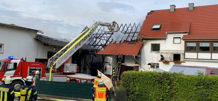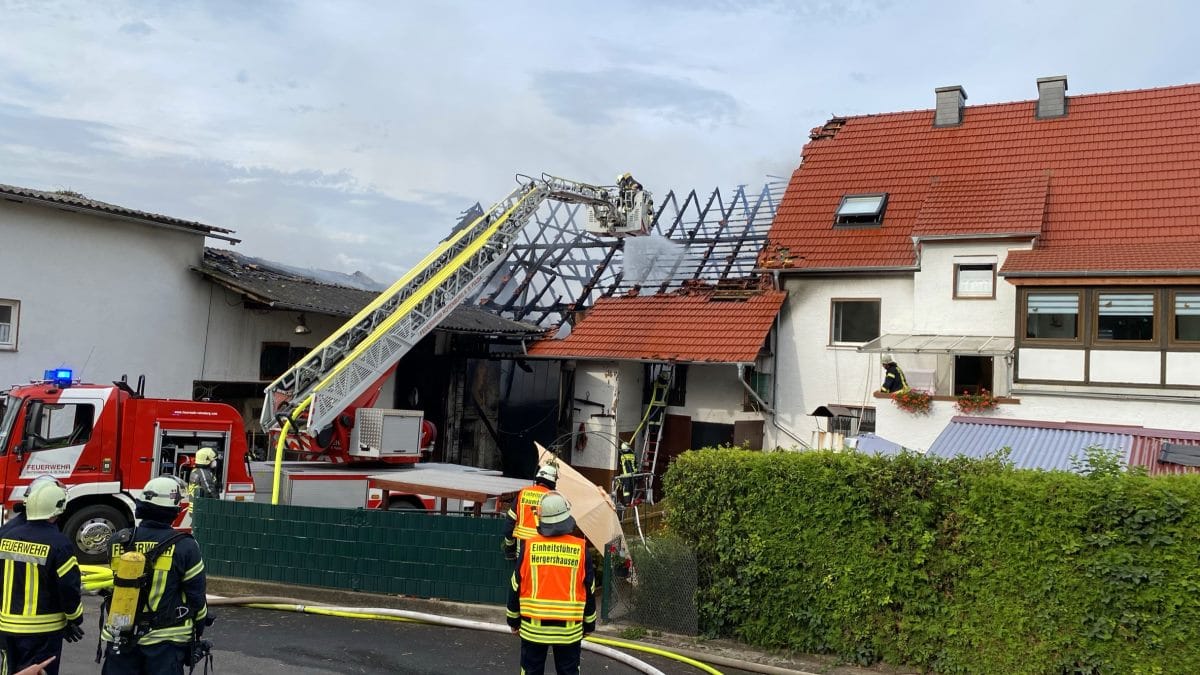 Hersfeld/Rotenburg – Am Sonntagabend wurden die Feuerwehren der Großgemeinde Alheim und Rotenburg a.d. Fulda gegen 17 Uhr zu einem Scheunenbrand in Baumbach alarmiert. Beim Eintreffen der ersten Feuerwehren fanden die Einsatzkräfte eine direkt an ein Wohnhaus grenzende Scheune im Vollbrand vor. Nach anfänglichen Wasserproblemen gelang es den Einsatzkräften schnell, das Feuer unter Kontrolle zu bekommen und ein Übergreifen der Flammen auf das angrenzende Wohnhaus zu verhindern. Eine Zwischendecke zwischen Scheune und Wohnhaus geriet in Brand, konnte aber schnell abgelöscht werden. In der Scheune brannten auch mehrere Rundballen, die von der Feuerwehr so lange abgelöscht werden müssen, bis sie mit einem Stapler aus der Scheune geholt werden können. Wie der Besitzer des Hauses an der Einsatzstelle mitteilte, hatte er gerade eine Fuhre Stroh in die Scheune geschafft und befand sich auf dem Feld, als er den Rauch aus seinem Wohnort sah. Erst beim Eintreffen dann die böse Überraschung, es war sein Haus, das brannte. Eine Bewohnerin erlitt vermutlich durch die Aufregung einen Kreislaufzusammenbruch und wurde mit dem Rettungswagen in ein Krankenhaus gefahren. Der Hausbesitzer will sein Haus aber so schnell es geht wiederherrichten. Hierbei versicherte er an der Einsatzstelle, werden ihm seine Nachbarn, zu denen er einen guten Kontakt pflegt, bestimmt helfen. Über die Brandursache und die Höhe des Sachschadens konnten noch keine Angaben gemacht werden. Die Feuerwehren waren mit 80 Einsatzkräften im Einsatz.