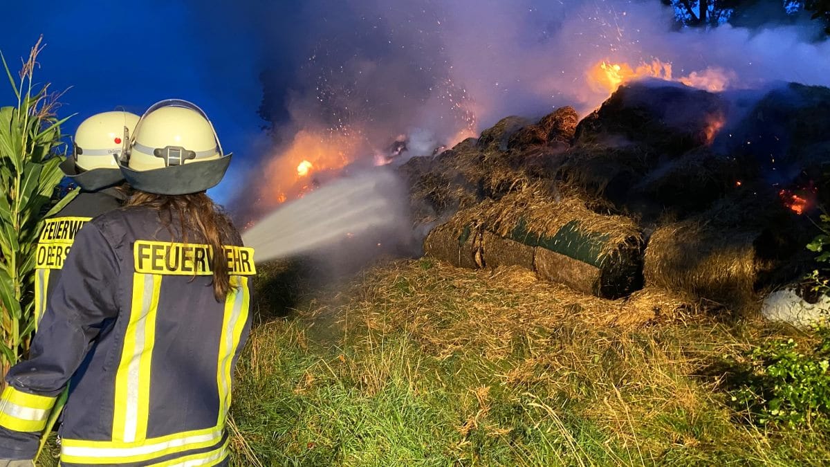 Wildeck – Nicht immer klappt es bei den freiwilligen Feuerwehrleuten mit einem geruhsamen Feierabend. So auch am Montagabend, als für die Feuerwehren in Wildeck der Alarmmelder aufging. Brennende Strohballen wurden gegen 18.50 Uhr in der Richelsdorfer Straße direkt neben der Autobahn gemeldet. Beim Eintreffen der ersten Einsatzkräfte wurde dem Einsatzleiter Patrick Kniest sehr schnell klar, dass der Feierabend in sehr weite Ferne rücken würde. Auf einer Wiese direkt neben der A4 keine 20 Meter von der Richtungsfahrbahn zum Kirchheimer Dreieck entfernt, brannten ca. 500 Strohballen. Feuerwehren aus der Gemeinde Wildeck und Nachbarwehren wurden nachalarmiert um die Wasserversorgung, die teilweise über eine längere Wegstrecke ging, sicher zu stellen. Auch aus dem benachbarten Bundesland Thüringen wurden Einsatzkräfte alarmiert, um die Kamerad:innen an der Einsatzstelle zu unterstützen und eine ausreichende Wasser sicher zu stellen.