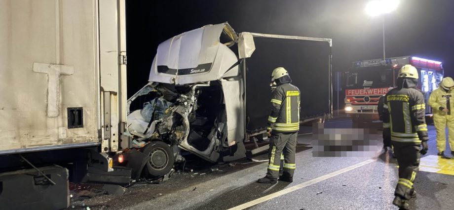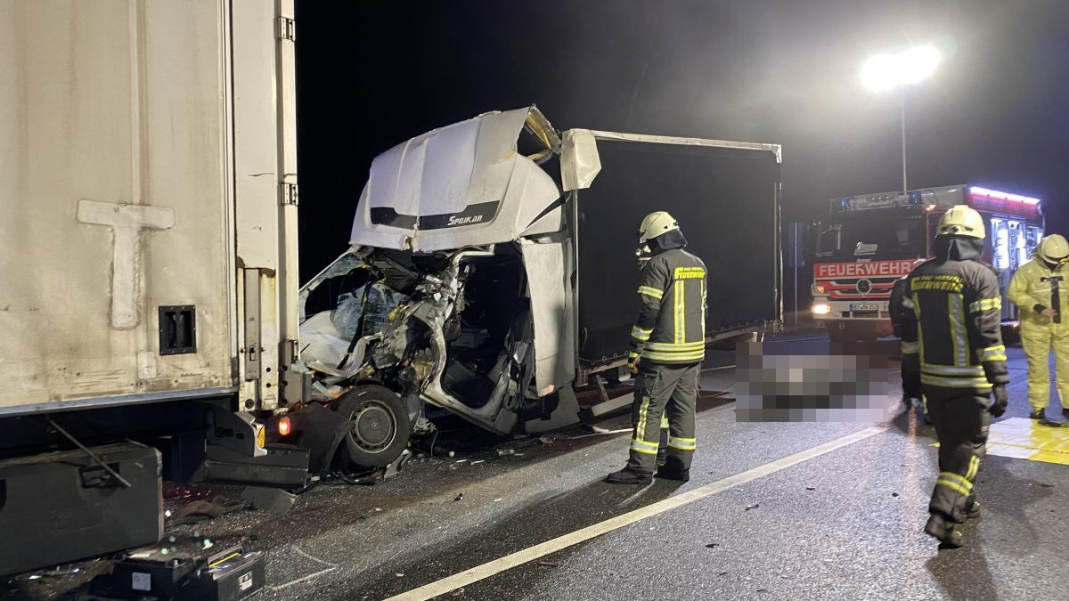 Hersfeld-Rotenburg – Zu einen tödlichen Auffahrunfall kam es am Mittwochabend gegen 18 Uhr auf der A4 zwischen Hönebach und Friedewald in Höhe der Abfahrt Friedewald in Fahrtrichtung Kirchheimer Dreieck. Der Fahrer eines mit leeren Palletten beladenen Sattelzuges fuhr nach eigenen Angaben auf ein Stauende zu. Er schaltete den Warnblinker an, reduzierte die Geschwindigkeit bis zum völligen Stillstand und zog die Feststellbremse an. In diesem Moment spürte er einen heftigen Einschlag. Zusammen mit einem Trucker Kollegen, der Ebenfalls am Stauende stand, ging er zum Heck seines Aufliegers. Ein Kleinlaster war vermutlich so heftig und fast ungebremst in das Heckportal gekracht, dass die Fahrgastzelle völlig zusammengequetscht war. Ein Zugang zum schwerst eingeklemmten Fahrer war nicht möglich und ein Notarzt, der mit dem Rettungsdienst und der Feuerwehr zur Unfallstelle alarmiert war, konnte nur noch den Tod des Fahrers feststellen. Von der Feuerwehr aus Bad Hersfeld wurde die Unfallstelle abgesichert und der direkte Unfallbereich vor Schaulustigen geschützt. Von der Autobahnpolizei wurde für die Zeit der Rettungs- und Bergungsarbeiten eine Vollsperrung eingerichtet. Der Verkehr wurde ab Hönebach abgeleitet und in Richtung Bad Hersfeld umgeleitet. Es bildete sich auf der A4 ein Stau von mehreren Kilometern. Die Autofahrer zwischen Hönebach und Friedewald mussten bis 22.30 Uhr im Stau ausharren. Probleme gab es auch mit der Rettungsgasse. Wie Polizei und Feuerwehr mitteilten, gab es auf der Anfahrt erhebliche Probleme, weil viele Autofahrer immer noch nicht in der Lage sind, eine vorgeschriebene Rettungsgasse zu bilden. Dadurch wurde die Anfahrt zur Unfallstelle erheblich verzögert. Für die Unfallrekonstruktion wurde ein Gutachter zur Unfallstelle bestellt.