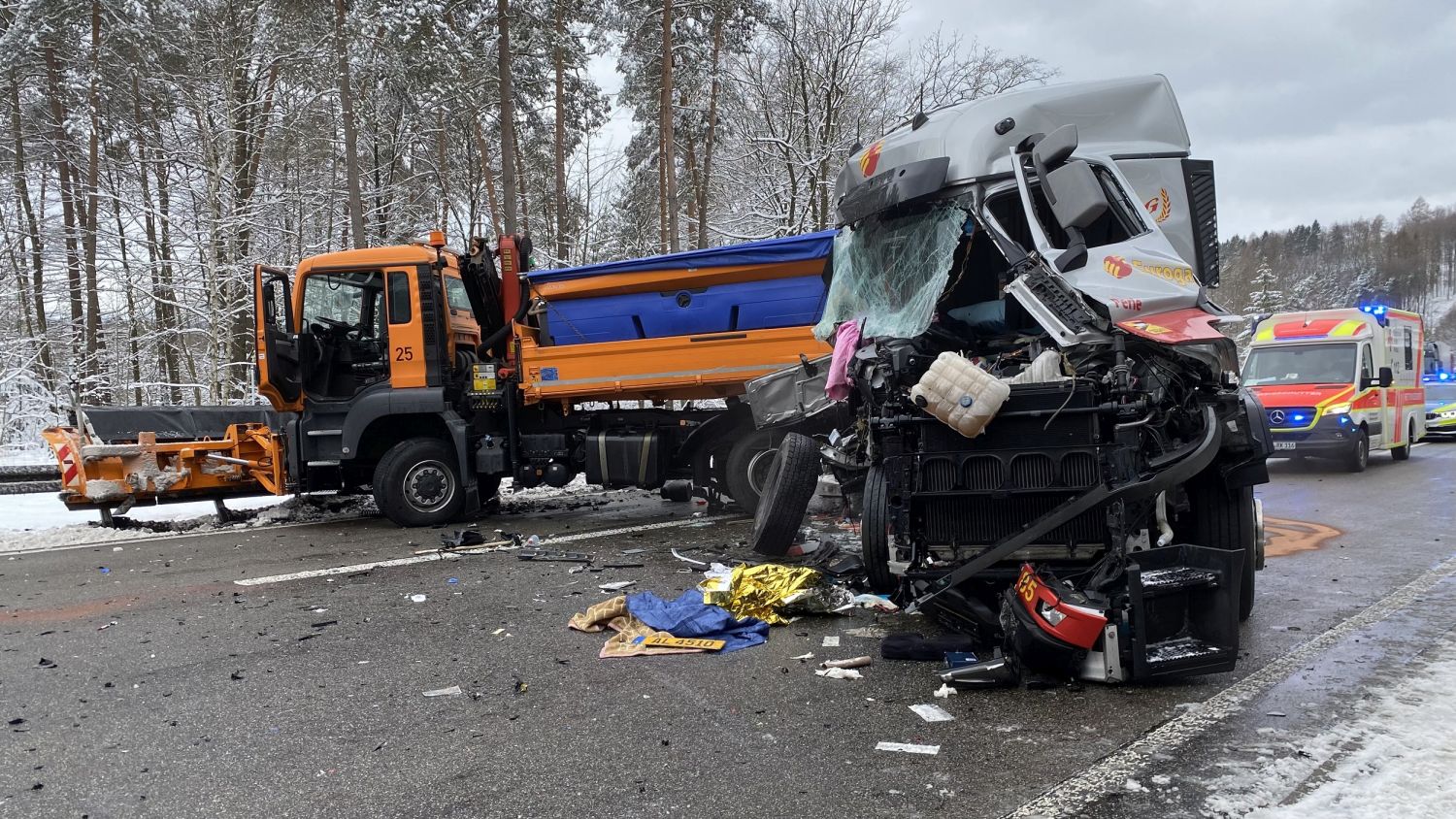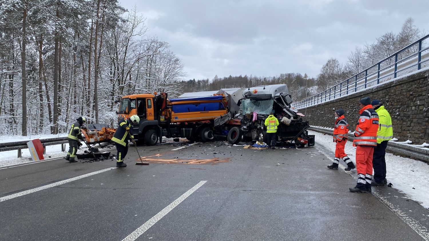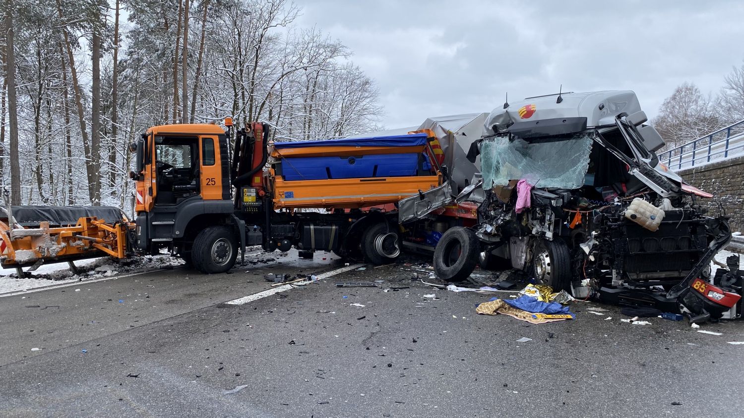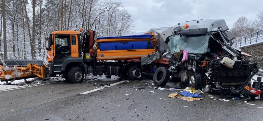 Osthessen: Sattelzug auf Winterdienst aufgefahren