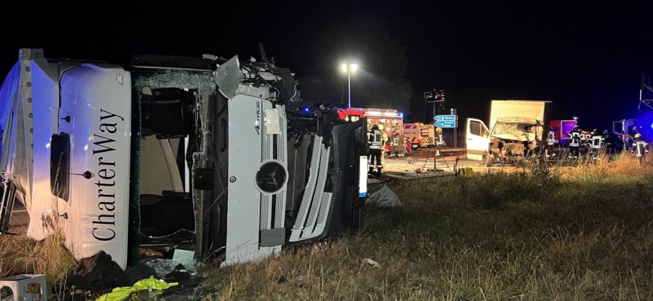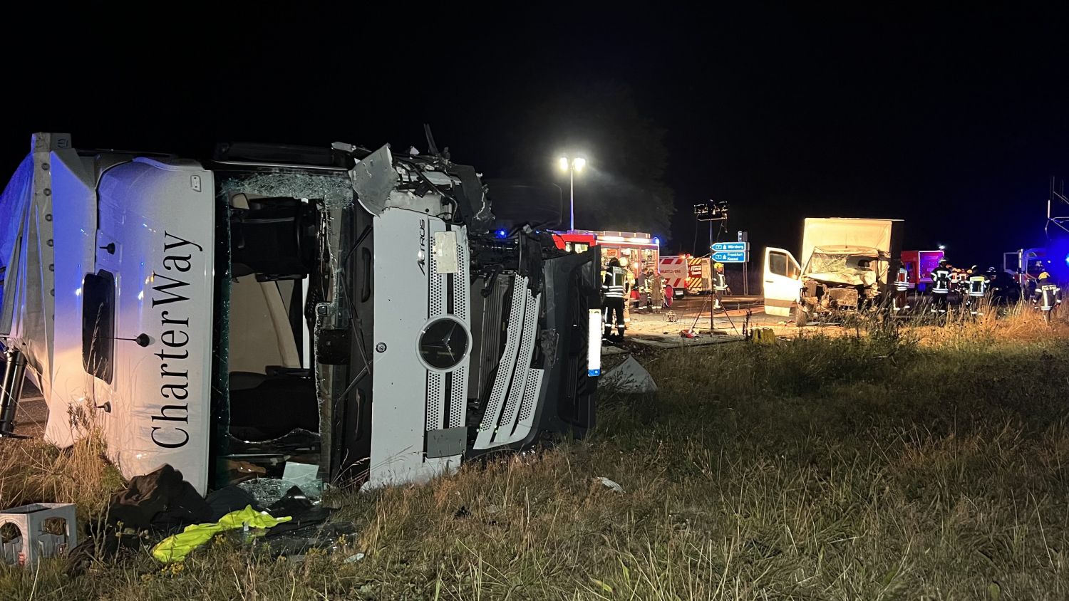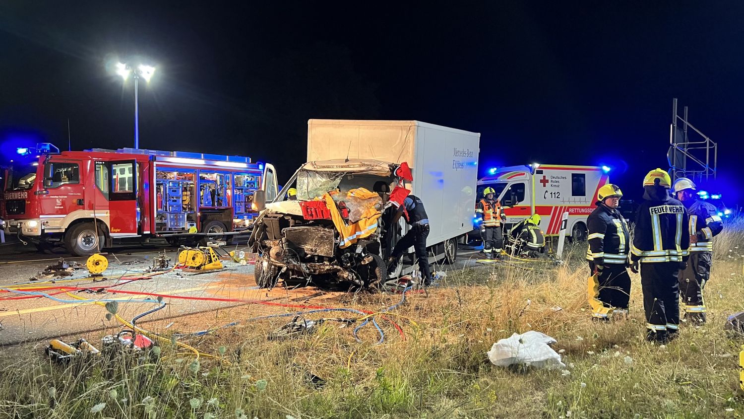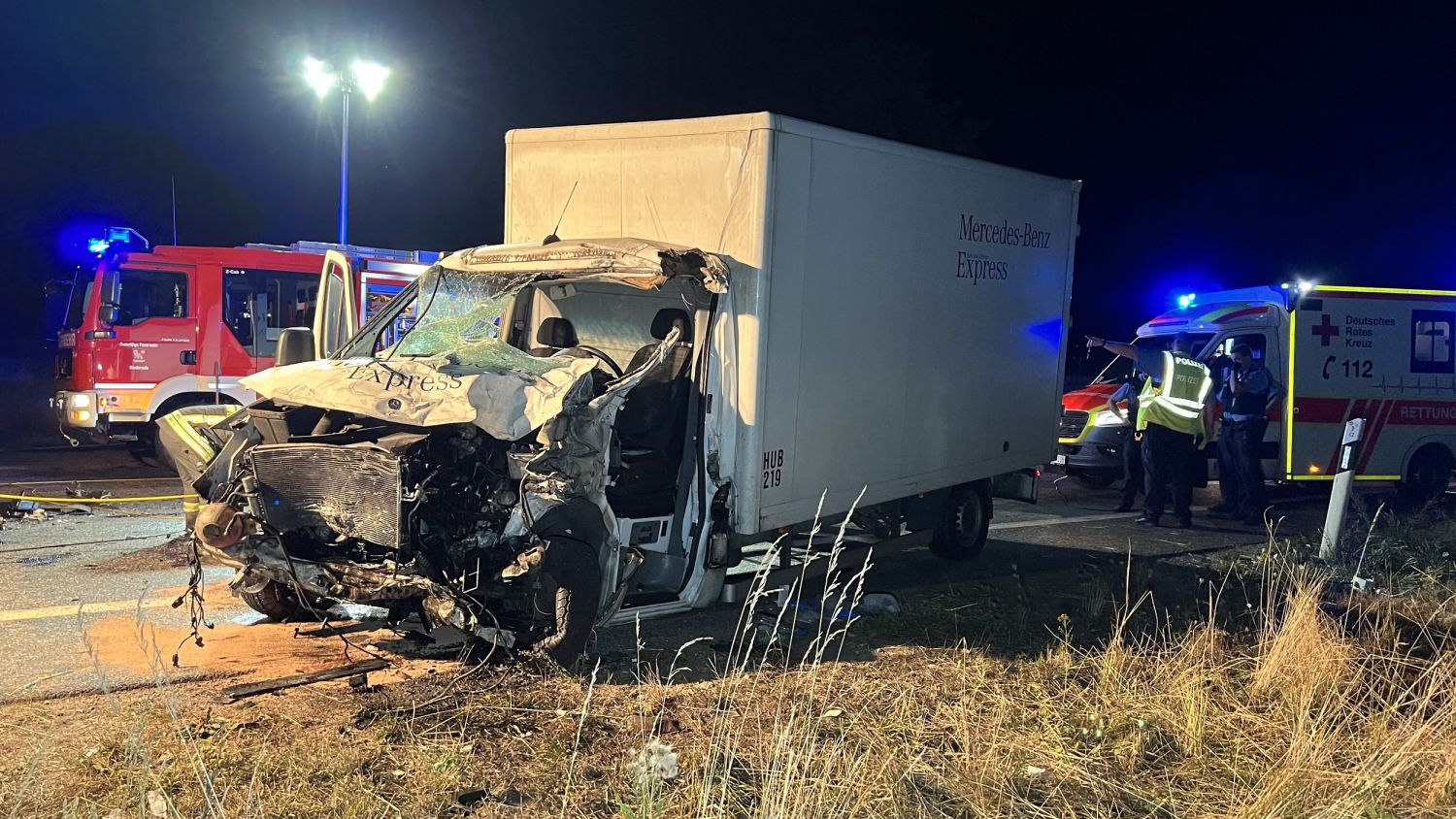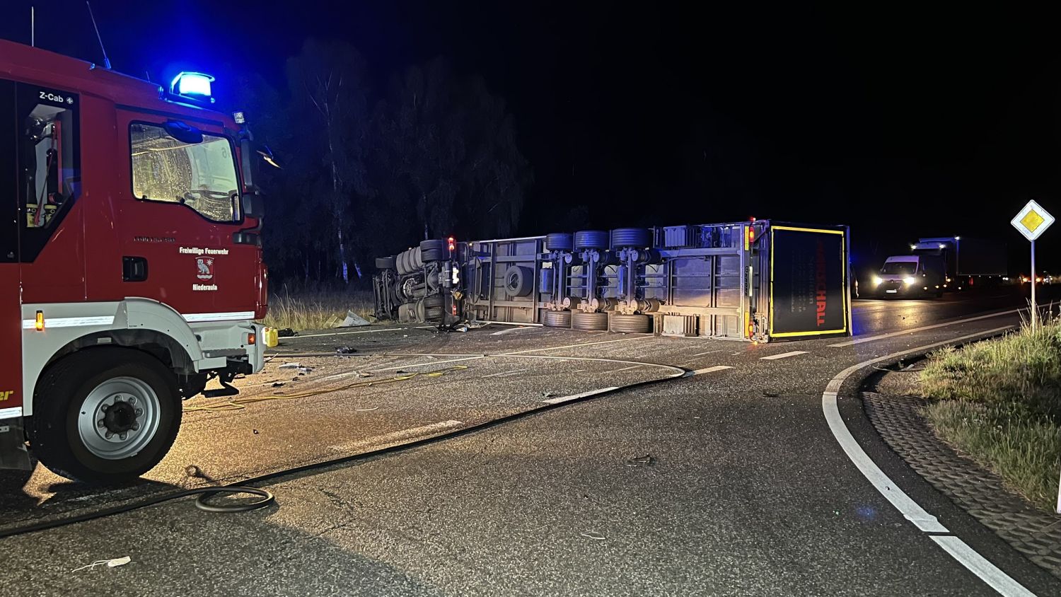 B62: Sattelzug kippt nach Crash mit Transporter um