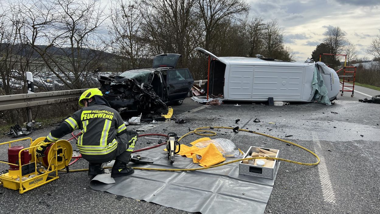 Transporter krachte in PKW – Zwei eingeklemmte Personen auf B62 bei Niederaula