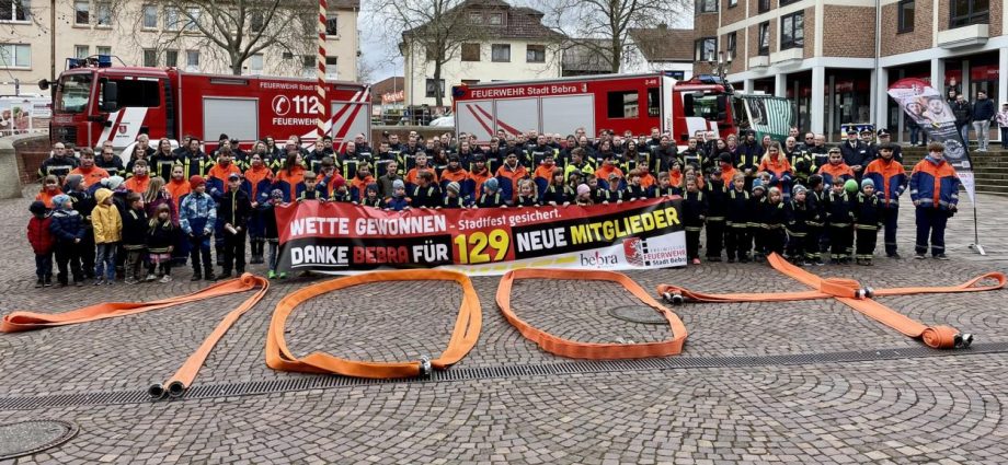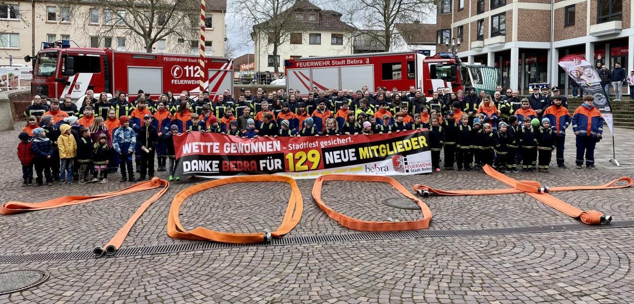 Bebra – es war eine nicht alltägliche Wette der Feuerwehr Bebra (– wir berichteten – ). Am 24.03 war es klar, die Wette ist gewonnen. 132 neue Kameraden meldeten sich innerhalb eines Jahres an. Das sind 32 mehr, als für den Sieg nötig gewesen wären. Allein in der Kinderfeuerwehr kamen 63 neue Mitglieder zusammen, bei der Jugendfeuerwehr sind es 14 Neue und 55 Neue Mitglieder sind für die Erwachsenen dazu gekommen. Nach und nach werden jetzt alle neuen Kameraden für die bevorstehenden Einsätze ausgebildet. Eine gelungene Wette der Feuerwehr Bebra. Das Stadtfest 2023 kann stattfinden.