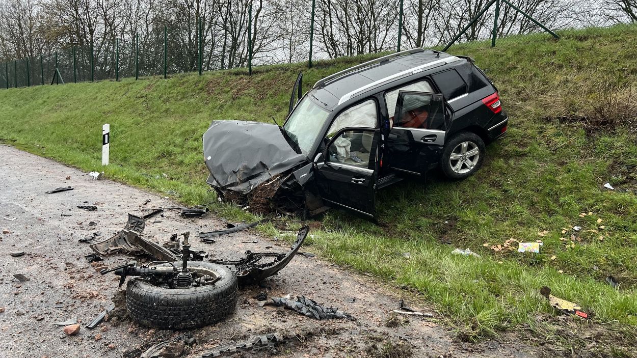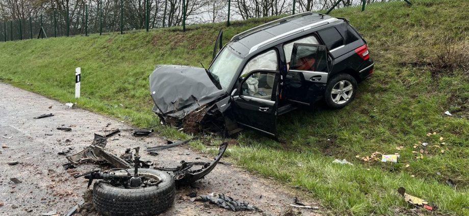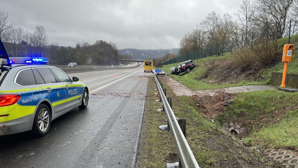 Bad Hersfeld – Am Sonntagmorgen befuhr der Fahrer eines mit zwei Personen besetzten Mercedes gegen 7.10 Uhr die A7 zwischen Kirchheim und Bad Hersfeld-West. In einer langgezogenen Rechtskurve verlor der Fahrer auf regennasser Fahrbahn die Kontrolle über sein Fahrzeug. Der Mercedes kam nach rechts von der Fahrbahn ab und schleuderte durch einen Flutgraben. Im weiteren Verlauf prallte das Fahrzeug gegen einen Wasserdurchlass, wobei beide Vorderräder abgerissen wurden, überschlug sich und kam an einer Böschung völlig zerstört auf den Rädern zum Stehen. Bei dem Unfall wurden beide Fahrzeuginsassen verletzt und mit dem Rettungswagen in ein Krankenhaus gefahren. Während der Unfallaufnahme durch die Autobahnpolizei Bad Hersfeld wurde der rechte von drei Fahrstreifen gesperrt. Aufgrund des noch geringen Verkehrs kam es zu keinen Behinderungen. Über die Höhe des Sachschadens konnten noch keine Angaben gemacht werden, am Mercedes entstand wirtschaftlicher Totalschaden.
