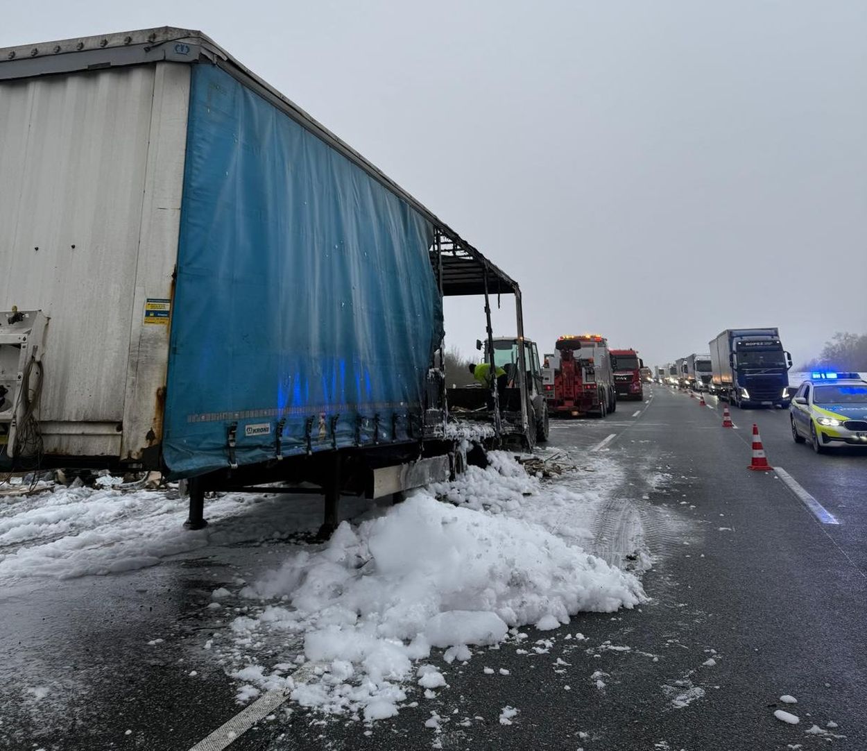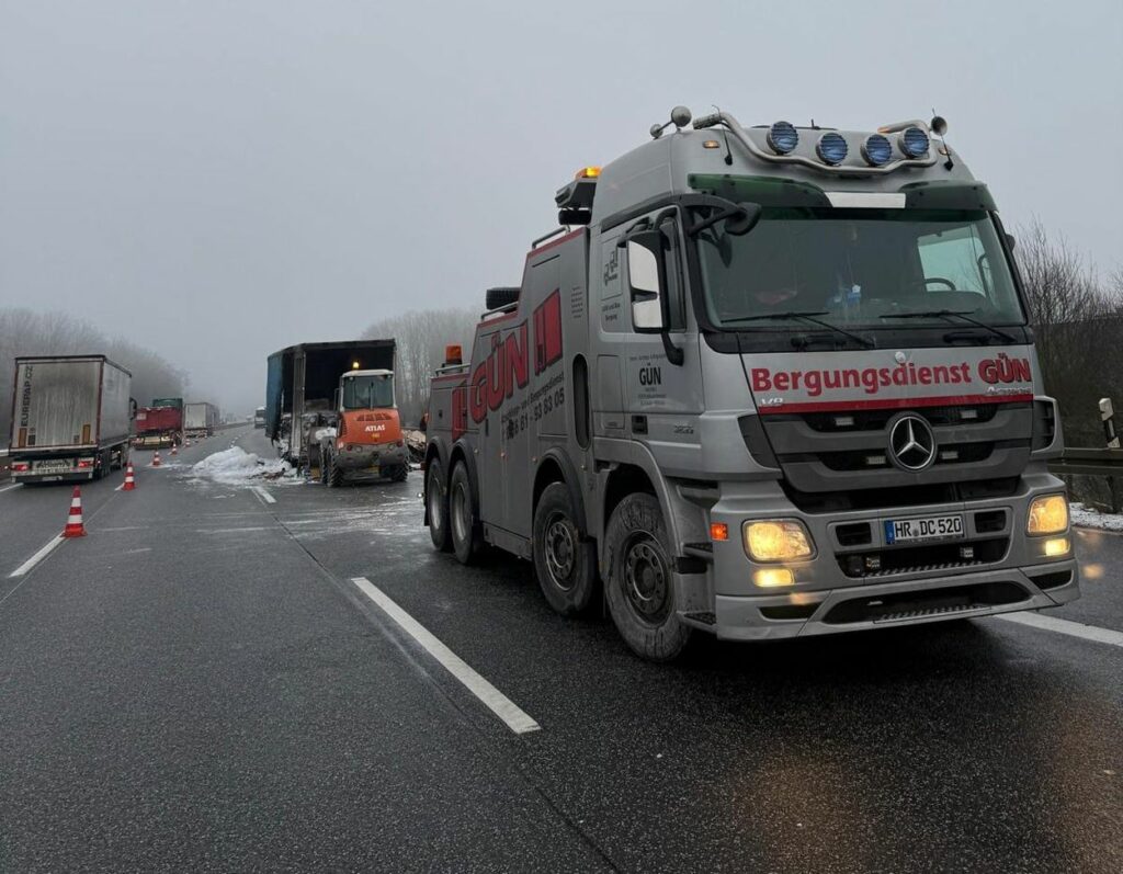 A4: Reifenbrand greift auf Lkw-Auflieger über – Fahrer rettet Zugmaschine