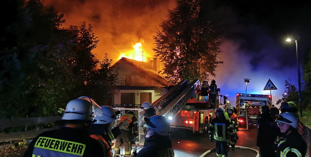 Friedewald – Am Mittwochabend wurden die Feuerwehren aus der Gemeinde Friedewald gegen 21.50 Uhr zu einem Wohnhausbrand in Friedewald gerufen. Beim Eintreffen der ersten Einsatzkräfte stand das Haus bereits im Vollbrand. Sofort wurde die Feuerwehr aus Bad Hersfeld nachalarmiert. Eine Bewohnerin (77) des Hauses befand sich bereits außerhalb des Hauses und wurde bis zum Eintreffen des Rettungsdienstes von Nachbarn betreut.