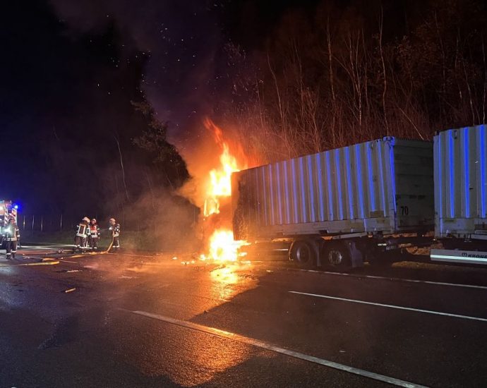 Osthessen: Sattelzug mit Käse auf der A7 ausgebrannt