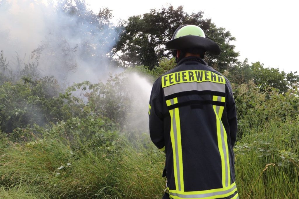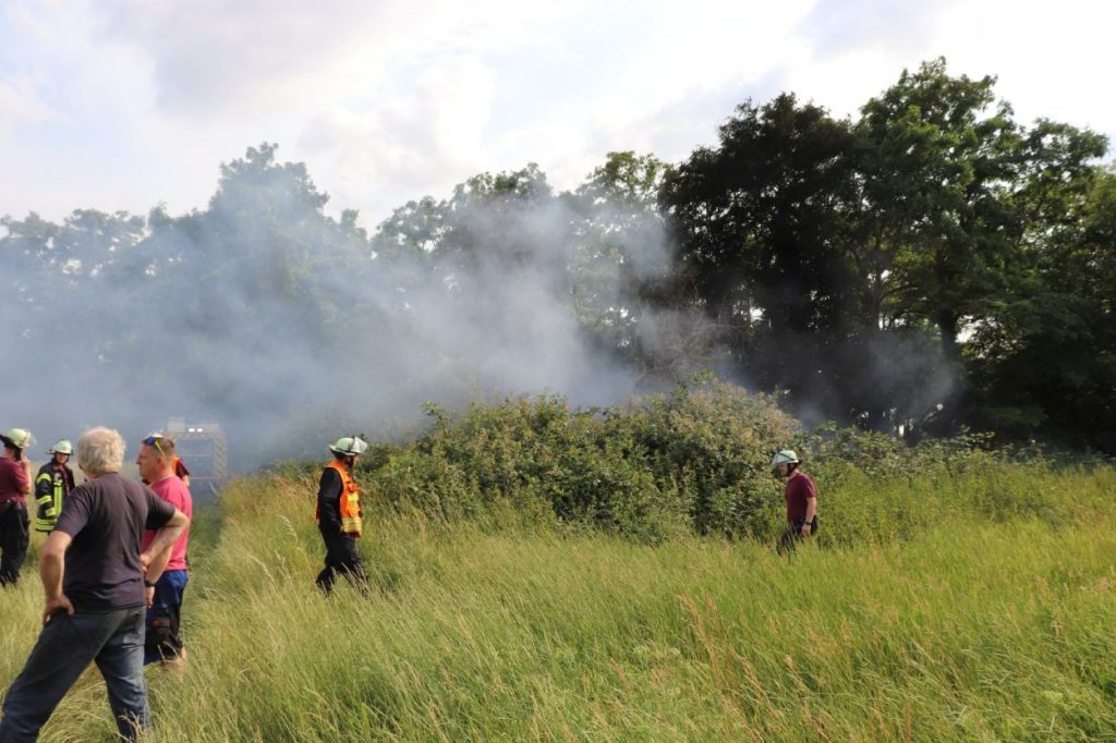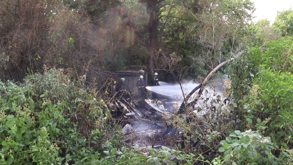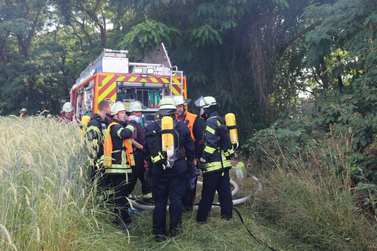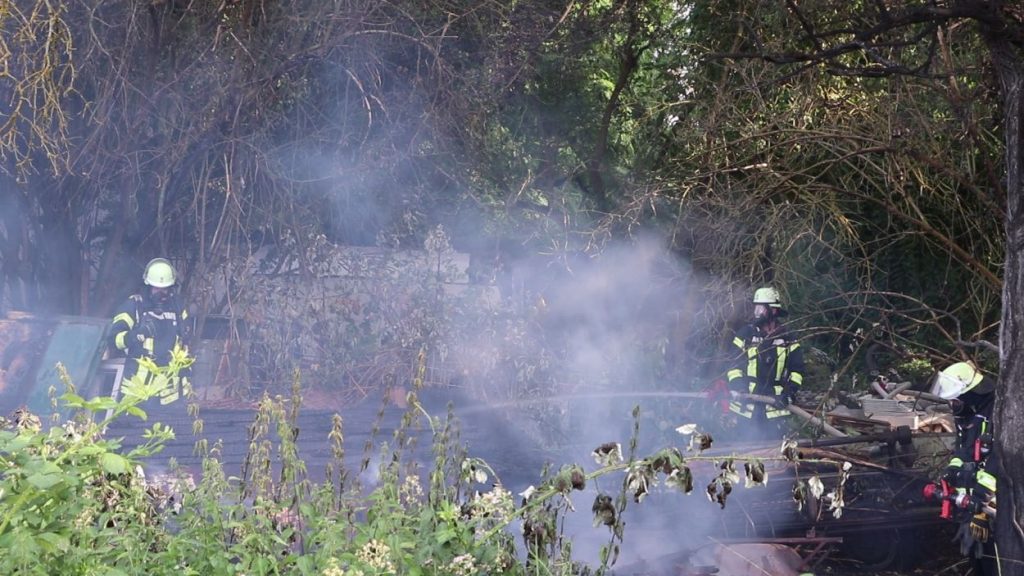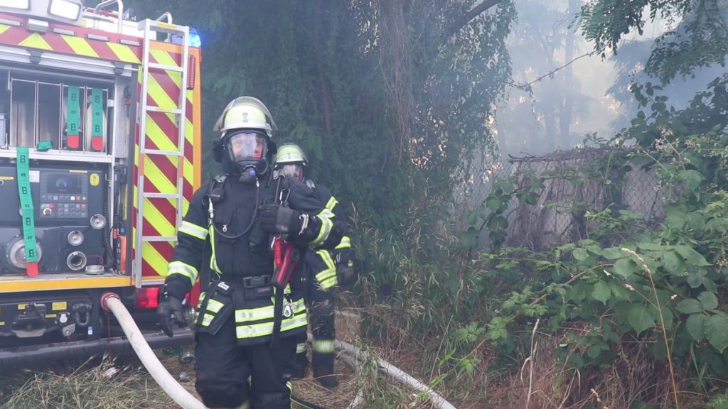 Groß Umstadt – Gegen 17 Uhr wurde die Feuerwehr Groß-Umstadt zu einem mutmaßlichen Waldbrand In der Wächtersbach alarmiert. Während der Anfahrt konnte eine Massive Rauchentwicklung wahrgenommen werden, was zu einer Vielzahl an Notrufen durch die Bevölkerung führte. Vor Ort stellte sich der vermeintliche Waldbrand als Brand eines größeren Grundstückes mit Fahrzeugen, Lagergut und Baumbestand dar. Die Feuerwehr Groß-Umstadt war mit 6 Fahrzeugen im Einsatz. Zur Brandbekämpfung wurden 5 Trupps unter schwerem Atemschutz eingesetzt. Aufgrund der immer wieder auflodernden Brandnestern wurde durch die Feuerwehr Löschschaum eingesetzt. Um die abgelegene Brandstelle zu erreichen, mussten mehrere Hundert Meter Schlauchleitung verlegt werden. Die Temperaturen von ca. 30°C erschwerten die Brandbekämpfung zusätzlich. Aufgrund der vermehrten Brandereignisse im Stadtgebiet von Groß-Umstadt sowie den benachbarten Kommunen kann eine Brandstiftung nicht ausgeschlossen werden. Die Polizei hat vor Ort die Ermittlungen aufgenommen.