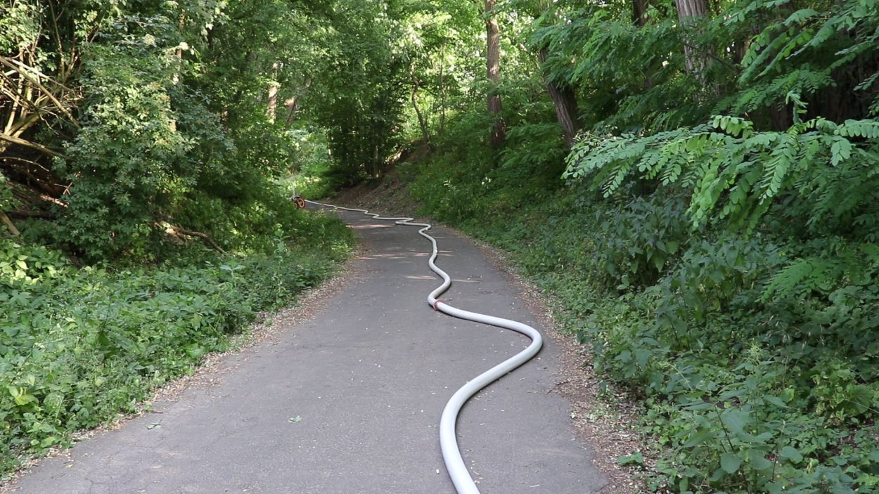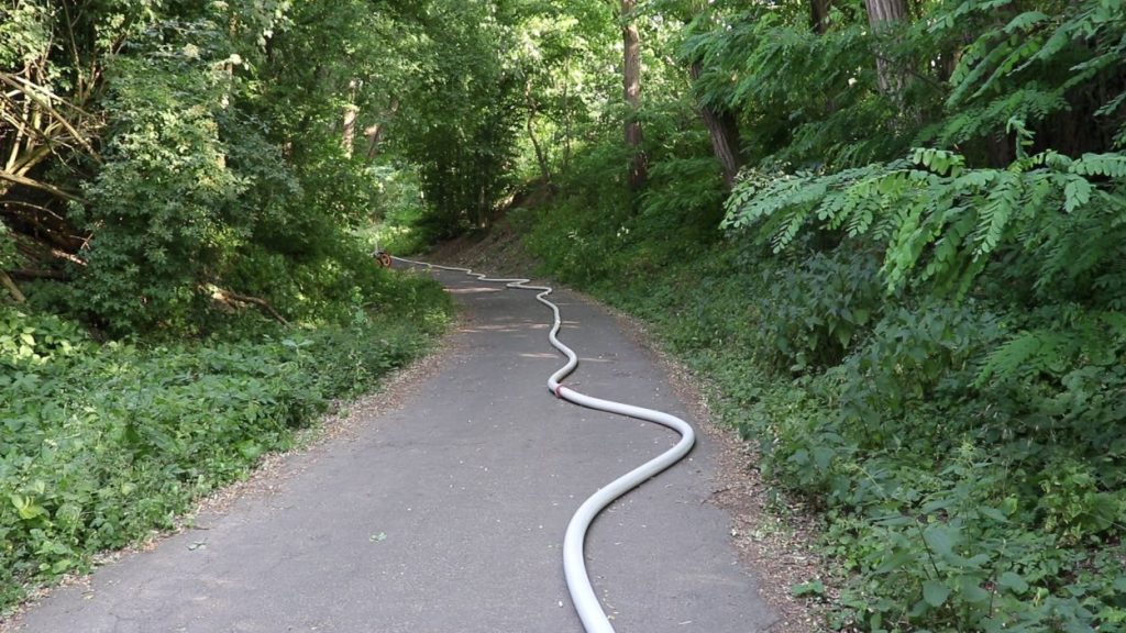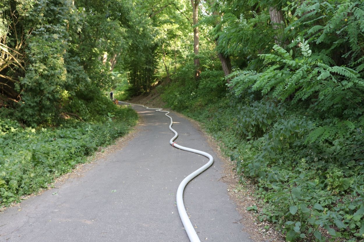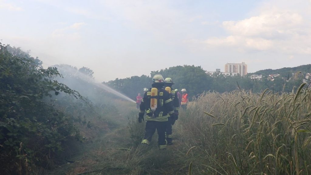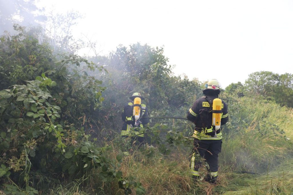 Groß Umstadt – Gegen 17 Uhr wurde die Feuerwehr Groß-Umstadt zu einem mutmaßlichen Waldbrand In der Wächtersbach alarmiert. Während der Anfahrt konnte eine Massive Rauchentwicklung wahrgenommen werden, was zu einer Vielzahl an Notrufen durch die Bevölkerung führte. Vor Ort stellte sich der vermeintliche Waldbrand als Brand eines größeren Grundstückes mit Fahrzeugen, Lagergut und Baumbestand dar. Die Feuerwehr Groß-Umstadt war mit 6 Fahrzeugen im Einsatz. Zur Brandbekämpfung wurden 5 Trupps unter schwerem Atemschutz eingesetzt. Aufgrund der immer wieder auflodernden Brandnestern wurde durch die Feuerwehr Löschschaum eingesetzt. Um die abgelegene Brandstelle zu erreichen, mussten mehrere Hundert Meter Schlauchleitung verlegt werden. Die Temperaturen von ca. 30°C erschwerten die Brandbekämpfung zusätzlich. Aufgrund der vermehrten Brandereignisse im Stadtgebiet von Groß-Umstadt sowie den benachbarten Kommunen kann eine Brandstiftung nicht ausgeschlossen werden. Die Polizei hat vor Ort die Ermittlungen aufgenommen.