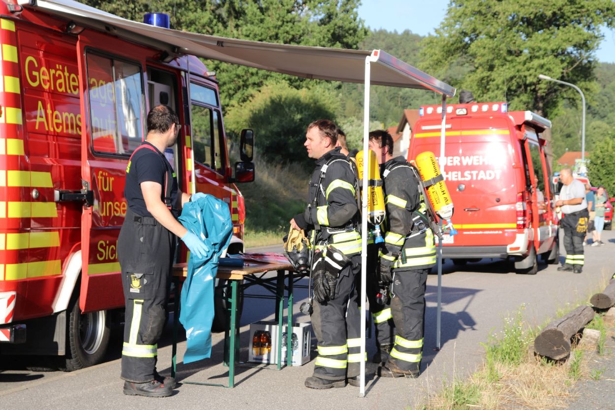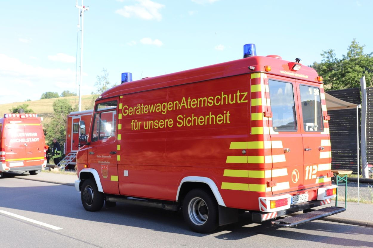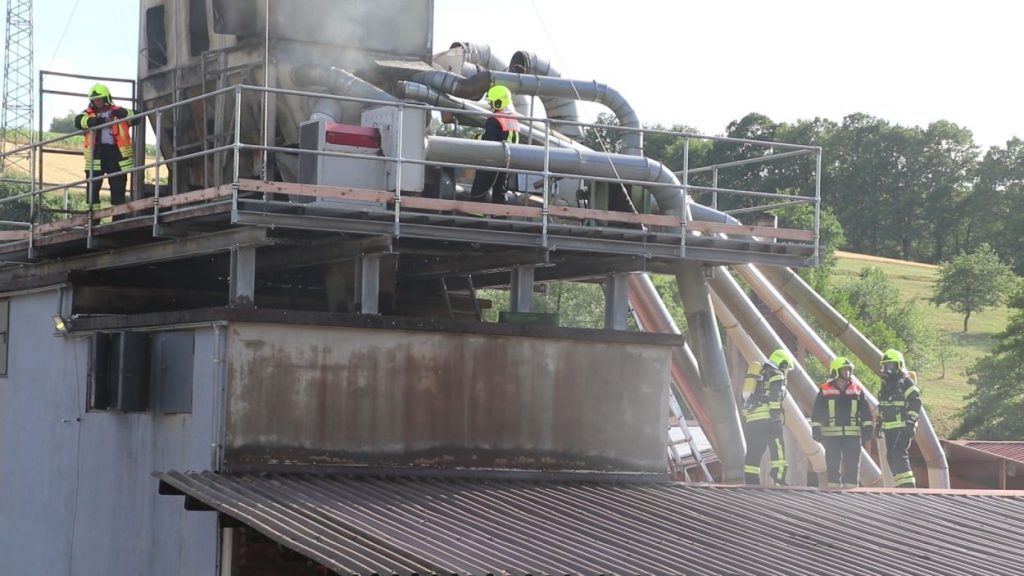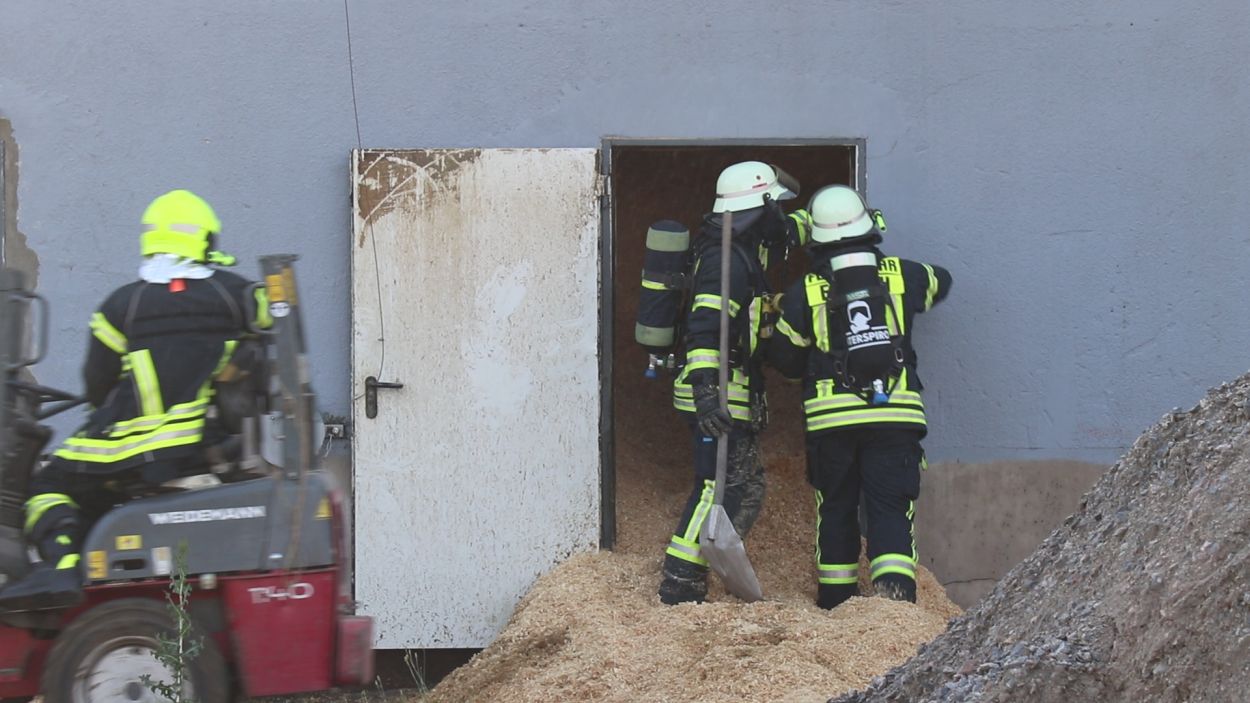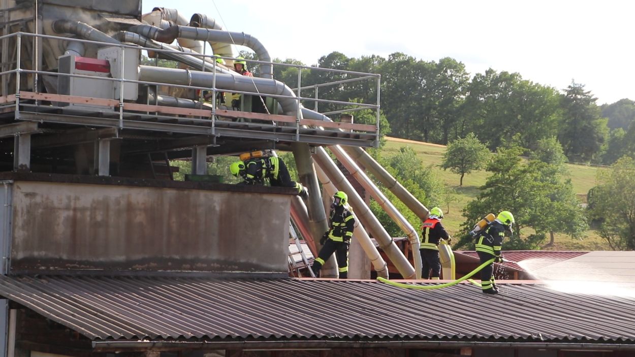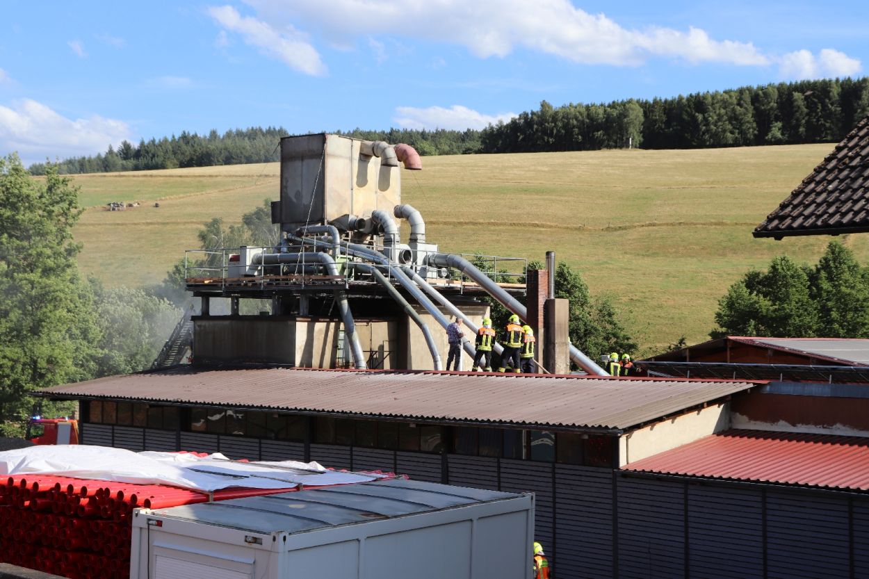 Mossautal – Am Montagnachmittag gegen 17.30 Uhr wurde über die Leitstelle ein Brand auf dem Gelände eines Sägewerks in der Unteren Siegfriedstraße im Mossautaler Ortsteil Hüttenthal gemeldet. Bei Ankunft der Einsatzkräfte brannte eine Filteranlage auf dem Dach eines Spänebunkers. Umgehend wurde ein massiver Löschangriff vorgenommen. Dennoch breiteten sich die Flammen auf zwei Spänebunker aus. Die Einsatzkräfte mussten unter schwerem Atemschutz bei knapp 30 Grad per Hand den Spänebunker ausräumen, was eine anstrengende und gefährliche Arbeit bedeutete. Daher wurde ein Gerätewagen Atemschutz wie auch Getränke an die Einsatzstelle gebracht. Die angrenzende B460 musste voll gesperrt werden. Zusätzlich wurde über KATWARN eine Meldung an die Bevölkerung ausgegeben. Im Laufe des Einsatzes kamen Einheiten aus fast dem ganzen Odenwaldkreis zum Einsatz. In Spitzenzeiten 22 Fahrzeuge mit über 80 Einsatzkräften. Darunter auch spezielle Gefahrstoffmessfahrzeuge, eine Drehleiter und ein Großtanklöschfahrzeug. Die Löschmaßnahmen werden wohl bis in die Nacht andauern.