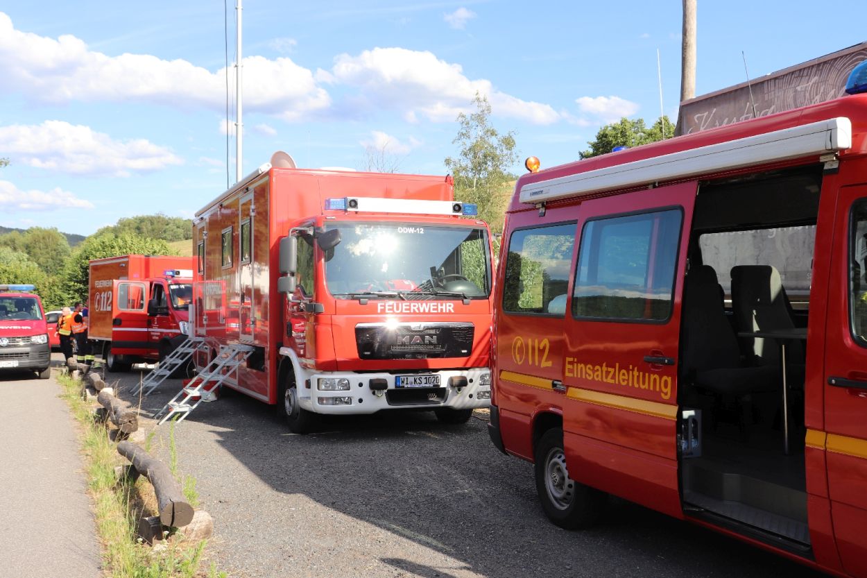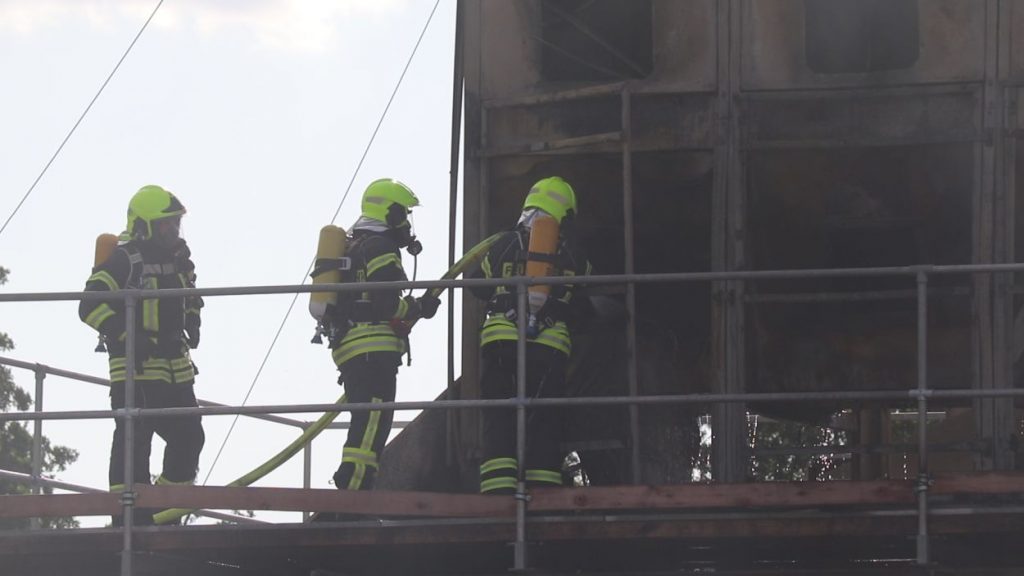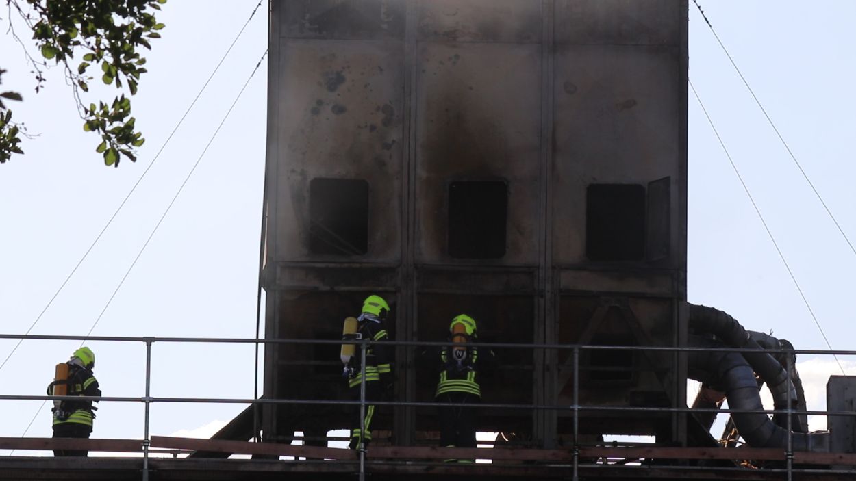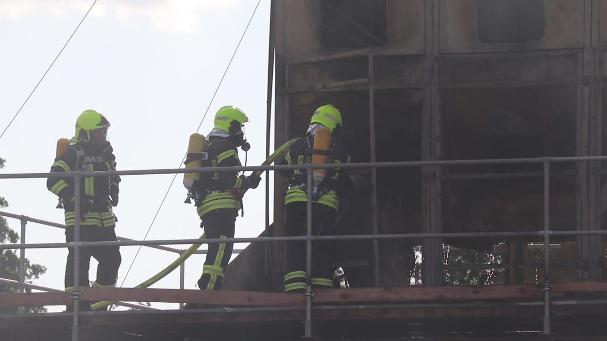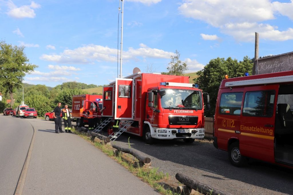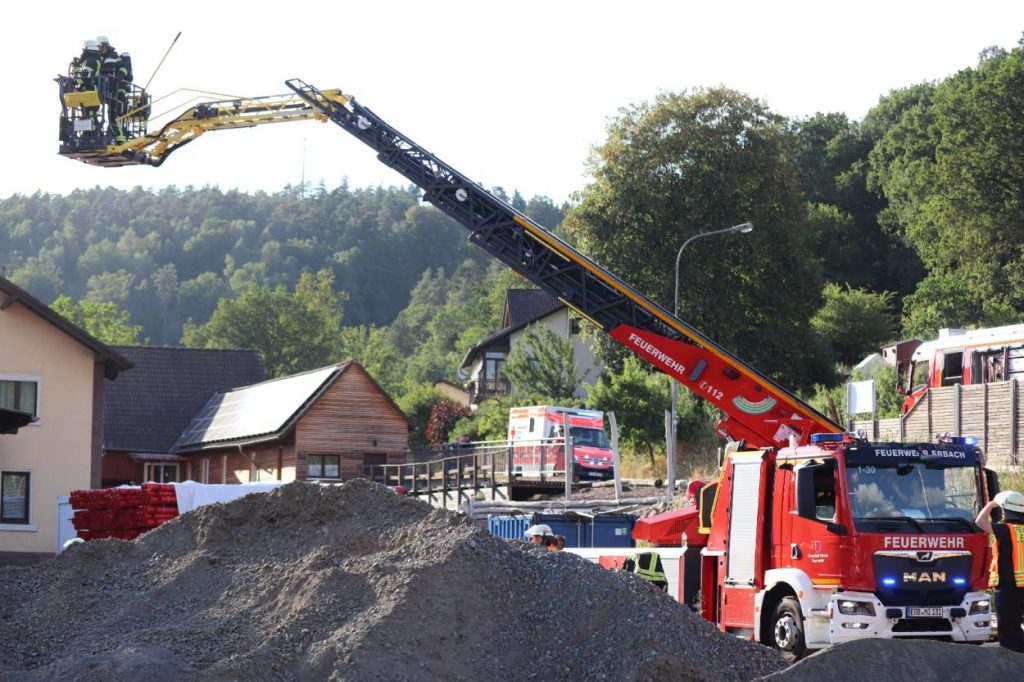 Mossautal – Am Montagnachmittag gegen 17.30 Uhr wurde über die Leitstelle ein Brand auf dem Gelände eines Sägewerks in der Unteren Siegfriedstraße im Mossautaler Ortsteil Hüttenthal gemeldet. Bei Ankunft der Einsatzkräfte brannte eine Filteranlage auf dem Dach eines Spänebunkers. Umgehend wurde ein massiver Löschangriff vorgenommen. Dennoch breiteten sich die Flammen auf zwei Spänebunker aus. Die Einsatzkräfte mussten unter schwerem Atemschutz bei knapp 30 Grad per Hand den Spänebunker ausräumen, was eine anstrengende und gefährliche Arbeit bedeutete. Daher wurde ein Gerätewagen Atemschutz wie auch Getränke an die Einsatzstelle gebracht. Die angrenzende B460 musste voll gesperrt werden. Zusätzlich wurde über KATWARN eine Meldung an die Bevölkerung ausgegeben. Im Laufe des Einsatzes kamen Einheiten aus fast dem ganzen Odenwaldkreis zum Einsatz. In Spitzenzeiten 22 Fahrzeuge mit über 80 Einsatzkräften. Darunter auch spezielle Gefahrstoffmessfahrzeuge, eine Drehleiter und ein Großtanklöschfahrzeug. Die Löschmaßnahmen werden wohl bis in die Nacht andauern.