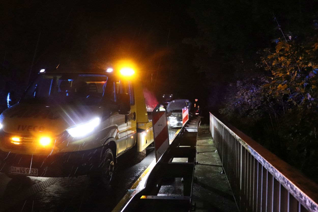 Darmstadt-Dieburg – In der Nacht von Montag auf Dienstag ereignete sich gegen 23:30 Uhr ein Verkehrsunfall auf der B38 zwischen Darmstadt und Reichelsheim, in Höhe Rossdorf. In einer Baustelle verlor ein junger Fahrzeuglenker die Kontrolle über sein Fahrzeug aufgrund der regennassen Fahrbahn und prallte durch das Aquaplaning in die Baustellenleitplanke. Der Fahrer wurde nicht eingeklemmt und konnte sein PKW selbstständig verlassen. Am PKW entstand Totalschaden, ebenso wurde eine Leitplanke schwer beschädigt. Der Dachschaden wird auf 50.000 Euro geschätzt. Die B38 war für rund eine Stunde voll gesperrt.