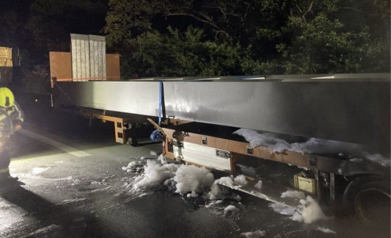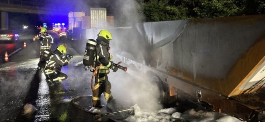 Raunheim – Am frühen Dienstagmorgen gegen 03.45 Uhr, geriet in Höhe des Parkplatzes „Neuhöfer Tann“ der Auflieger eines Schwertransportes aus bisher unbekannter Ursache in Brand. Durch den LKW-Fahrer konnte die Zugmaschine noch abgekoppelt werden, sodass an dieser kein Schaden entstehen konnte. Die Abschleppung des 10-Tonnen -Aufliegers dürfte noch geraume Zeit in Anspruch nehmen, da sich auf diesem noch ein 25-Tonnen schweres Brückenelement befindet. Die Autobahn soll ab 13 Uhr für die Bergung dann voll gesperrt werden.