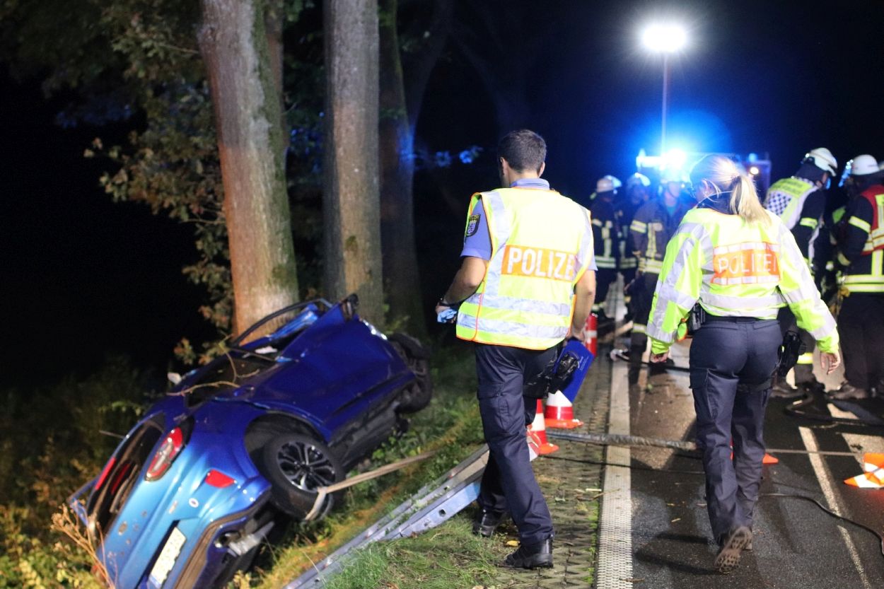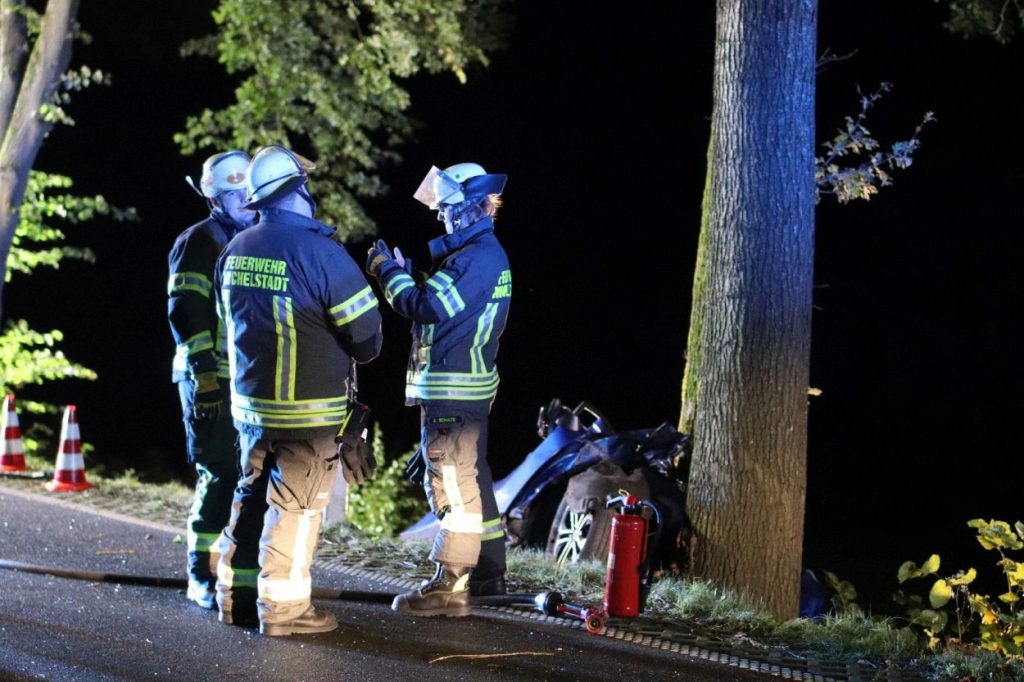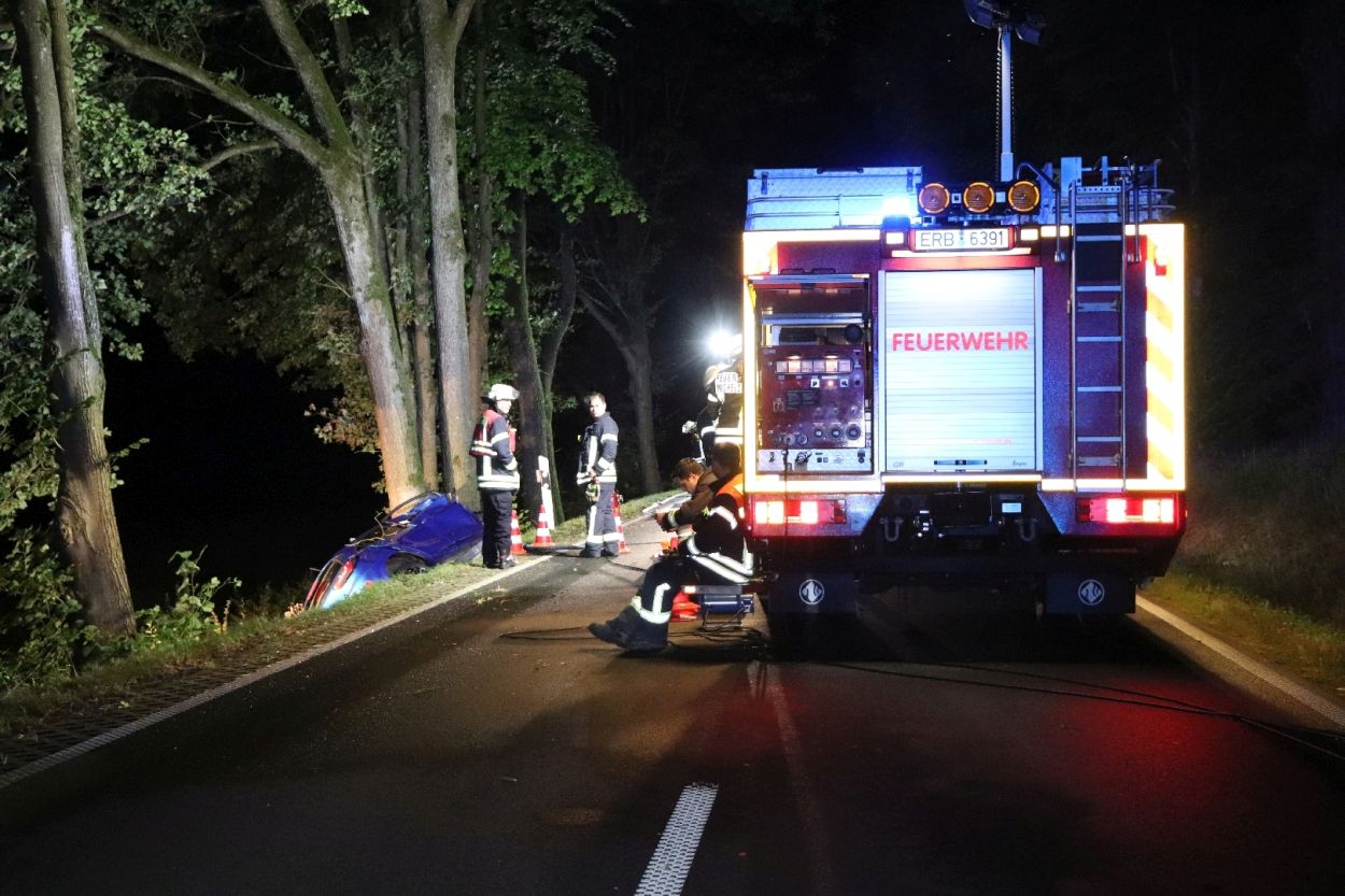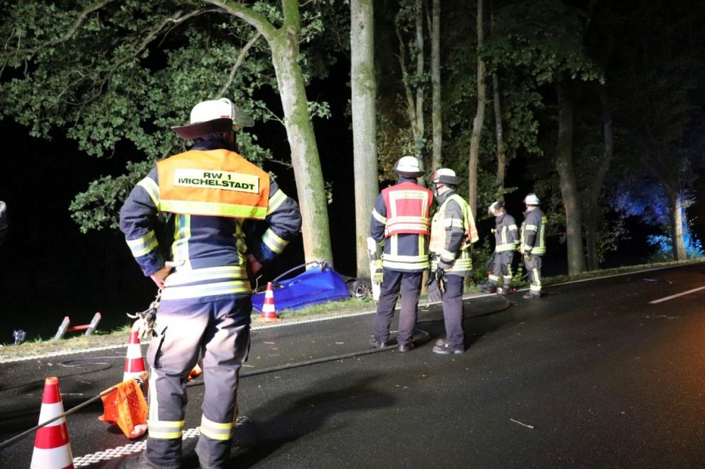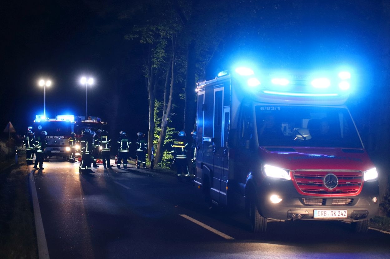 Michelstadt – Am späten Montagabend gegen 22:10 Uhr ereignete sich auf der B47 Michelstadt Richtung Bensheim zwischen den Stadtteilen Rehbach und Steinbuch ein schwerer Alleinunfall. Ein 22-Jähriger fuhr mit seinem Pkw von Steinbach in Fahrtrichtung Rehbach, als er auf gerader Strecke aus bisher ungeklärter Ursache nach links von der Fahrbahn abkam und gegen einen Baum prallte. Der Fahrer wurde durch die Wucht des Aufpralls aus dem Auto geschleudert. Die Feuerwehr und der Rettungsdienst, welche durch einen so genannten E Call Alarmruf automatisiert verständigt wurde konnte dem jungen Fahrer nicht mehr helfen, er erlag noch an der Unfallstelle seinen schweren Verletzungen. Da es sich beim dem KFZ um ein Ford Puma Hybrid Fahrzeug handelte musste die Feuerwehr umfangreiche Schutzmassnahmen treffen und das Fahrzeug dauerhaft mit einer Wärmebildkamera kontrollieren ob durch die massiven Schäden sich die Akkus des Fahrzeuges entzünden. Durch die Polizei Südhessen wurde ein Sachverständiger zur Klärung des Unfallhergangs hinzugezogen. Erst am 07.09 wurde ebenfalls die Feuerwehr Michelstadt zu einem tödlichen Unfall in ihrem Einsatzgebiet gerufen (- wir berichteten -). Den Einsatzkräften werden hier auch Gespräche mit Notfallseelsorgern angeboten, so Einsatzleiter Sascha Hamann.