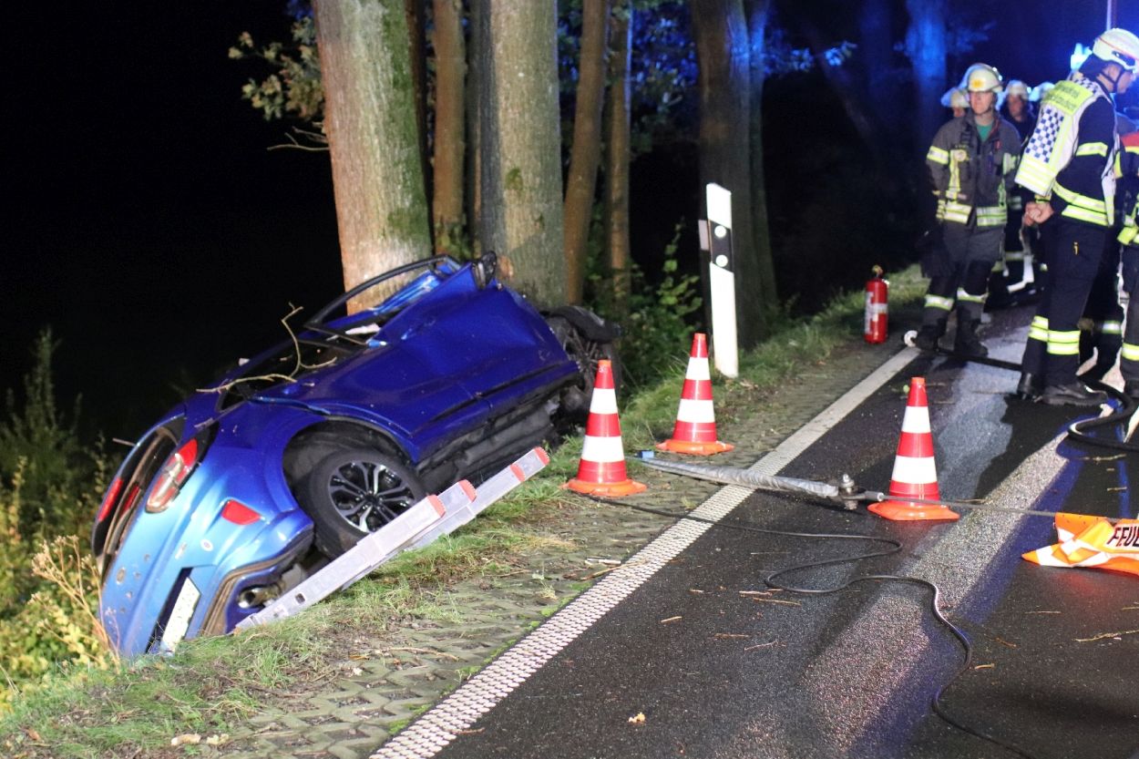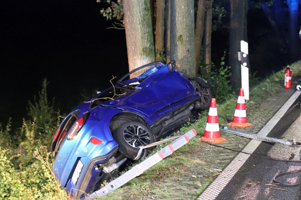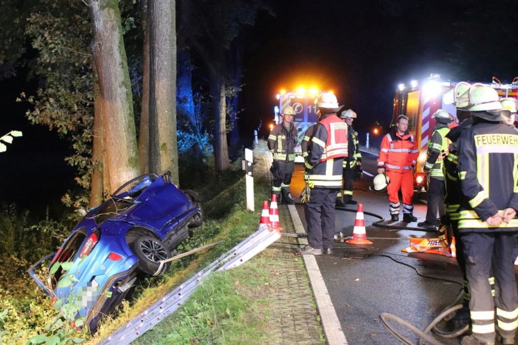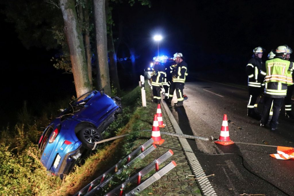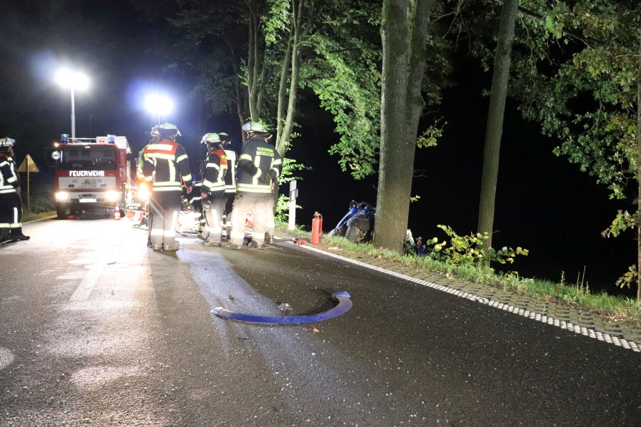 Michelstadt – Am späten Montagabend gegen 22:10 Uhr ereignete sich auf der B47 Michelstadt Richtung Bensheim zwischen den Stadtteilen Rehbach und Steinbuch ein schwerer Alleinunfall. Ein 22-Jähriger fuhr mit seinem Pkw von Steinbach in Fahrtrichtung Rehbach, als er auf gerader Strecke aus bisher ungeklärter Ursache nach links von der Fahrbahn abkam und gegen einen Baum prallte. Der Fahrer wurde durch die Wucht des Aufpralls aus dem Auto geschleudert. Die Feuerwehr und der Rettungsdienst, welche durch einen so genannten E Call Alarmruf automatisiert verständigt wurde konnte dem jungen Fahrer nicht mehr helfen, er erlag noch an der Unfallstelle seinen schweren Verletzungen. Da es sich beim dem KFZ um ein Ford Puma Hybrid Fahrzeug handelte musste die Feuerwehr umfangreiche Schutzmassnahmen treffen und das Fahrzeug dauerhaft mit einer Wärmebildkamera kontrollieren ob durch die massiven Schäden sich die Akkus des Fahrzeuges entzünden. Durch die Polizei Südhessen wurde ein Sachverständiger zur Klärung des Unfallhergangs hinzugezogen. Erst am 07.09 wurde ebenfalls die Feuerwehr Michelstadt zu einem tödlichen Unfall in ihrem Einsatzgebiet gerufen (- wir berichteten -). Den Einsatzkräften werden hier auch Gespräche mit Notfallseelsorgern angeboten, so Einsatzleiter Sascha Hamann.