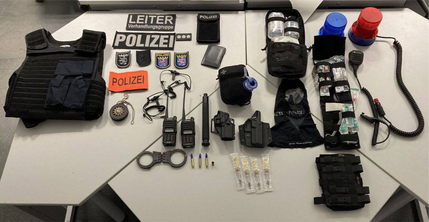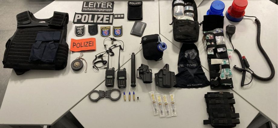 Der 19-jährige war fast umfangreich mit polizeitypischen Ausrüstungsgegenständen ausgestattet als sie selbst. Neben Handfesseln, Armbinden mit der Aufschrift „POLIZEI“, einem Teleskopschlagstock, mehreren hessischen Landeswappen fanden die Beamten u. a. noch einen gefälschten Dienstausweis und Funkgeräte. Bei der Überprüfung des Mannes stellte sich heraus, dass dieser in der Vergangenheit bereits mehrfach wegen ähnlicher Sachverhalte aufgefallen war. Die Polizei stellte alle Gegenstände sicher und leitete ein Strafverfahren unter anderem wegen des Verdachts der Amtsanmaßung und Urkundenfälschung gegen den 19-Jährigen ein.