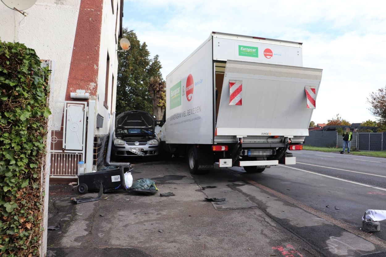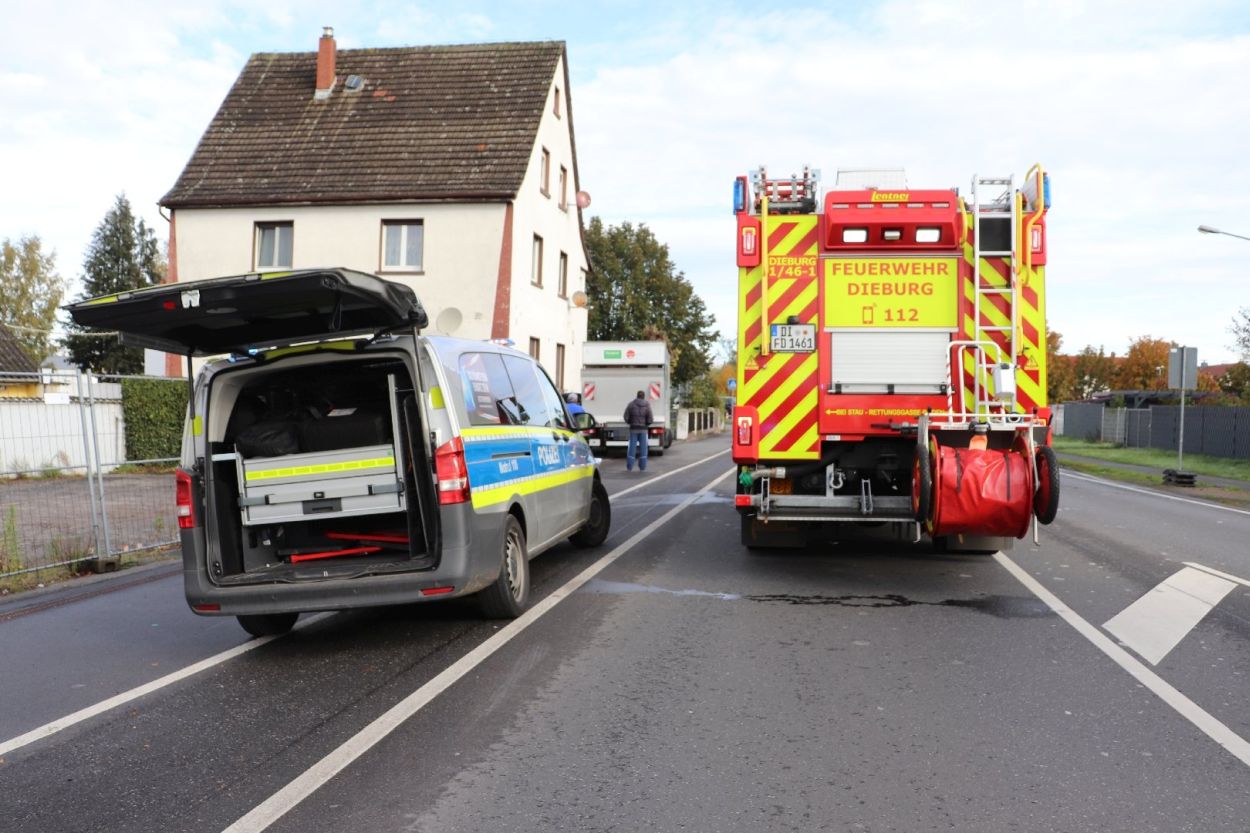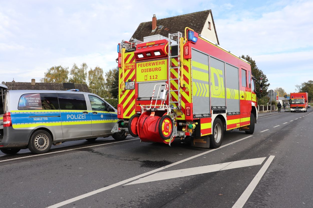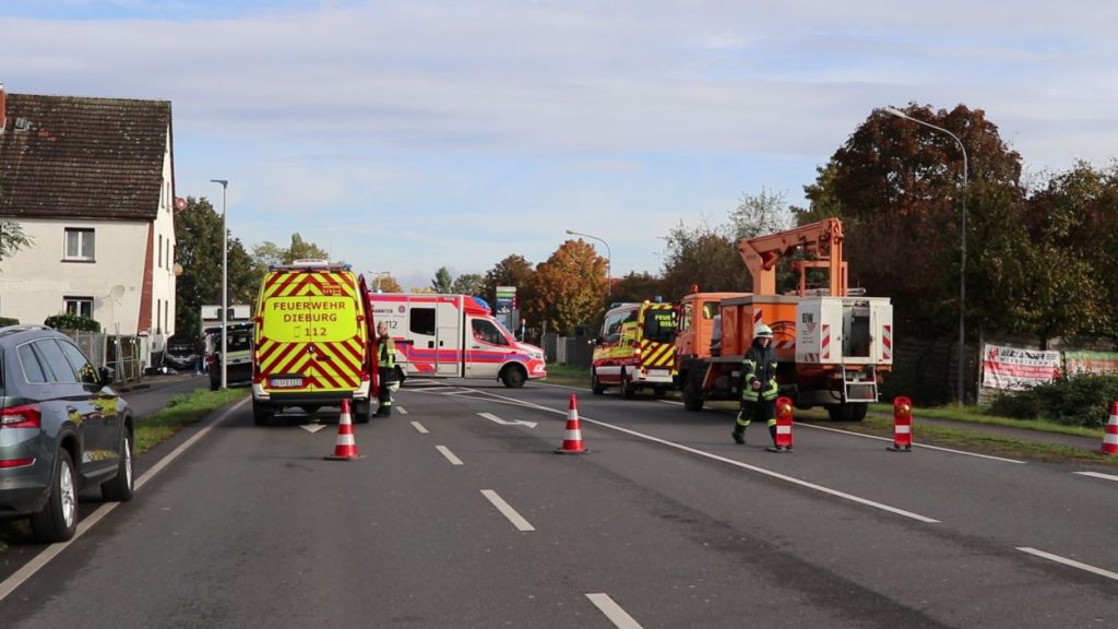 Dieburg – Am Mittwoch ereignete sich gegen 10:10 Uhr in Dieburg, Höhe der Frankfurter Straße 200 ein Verkehrsunfall mit einem LKW. Der LKW-Fahrer erlitt wohl am Steuer einen medizinischen Notfall, kam von der Straße ab, stieß mit einer Laterne, einem geparkten PKW sowie einer Hauswand zusammen. Der Fahrer (70) musste durch den Rettungsdienst vor Ort reanimiert werden und wurde anschließend in ein Krankenhaus transportiert. Die zerstörte Straßenlaterne musste von der Feuerwehr gesichert werden. Die Erstmeldung, dass der LKW brennen würde, bestätigte sich bei Eintreffen der Feuerwehr nicht, so Stadtbrandinspektor Carsten Hammer von der Feuerwehr Dieburg.