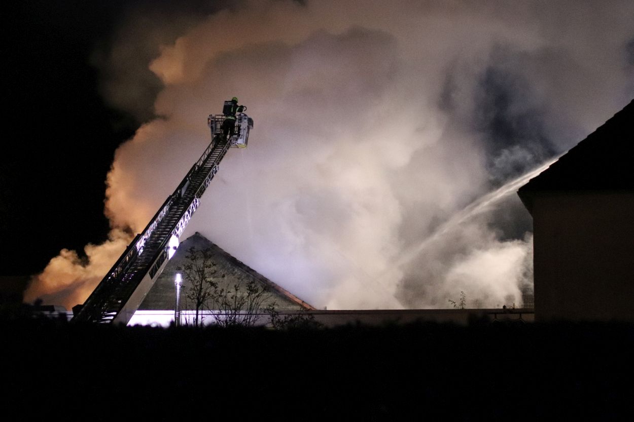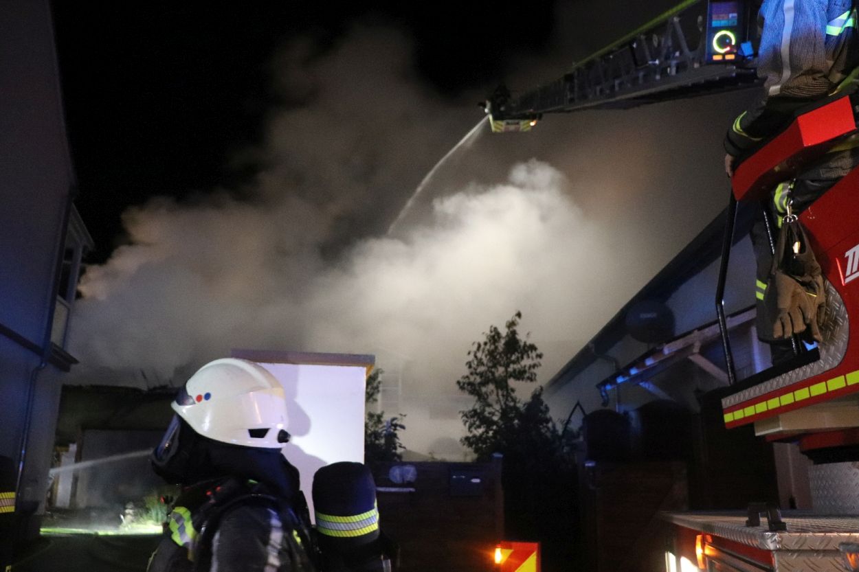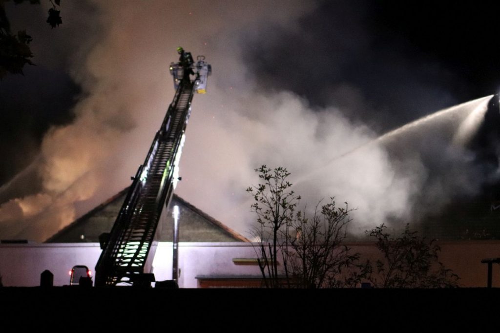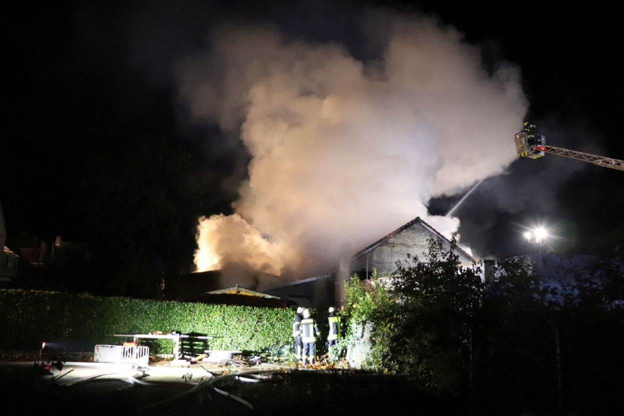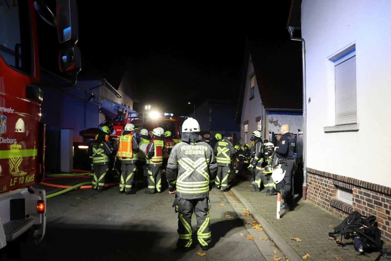 Rossdorf – Am Sonntag gegen 01.20 Uhr wurden die Feuerwehren der Gemeinde Rossdorf zu einem Großbrand alarmiert. Die Erstmeldung war eine brennende Scheune im Ortskern. Laut Einsatzleiter Eric Oeme waren hier Brennholz, Landwirtschaftliche Maschinen und Gasflaschen gelagert. Durch die Feuerwehr wurde ein umfassender Löschangriff und Riegelstellungen vorgenommen. Zu Einsatzbeginn wurden durch die Feuerwehr acht Familien aus umliegenden Gebäuden evakuiert. Hiervon verletzten sich zwei Personen durch Rauchgasinhalation und wurden in ein Krankenhaus verbracht. Im weiteren Einsatzverlauf wurde laut Polizei eine weitere Person leicht verletzt durch herabtropfende Flüssigkeiten, als die Person erneut ihr Gebäude betreten wollte.