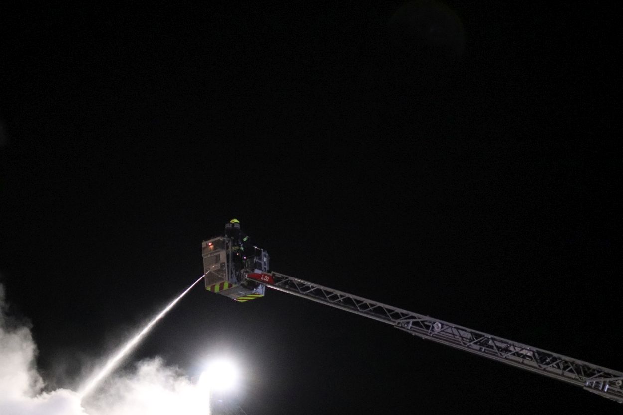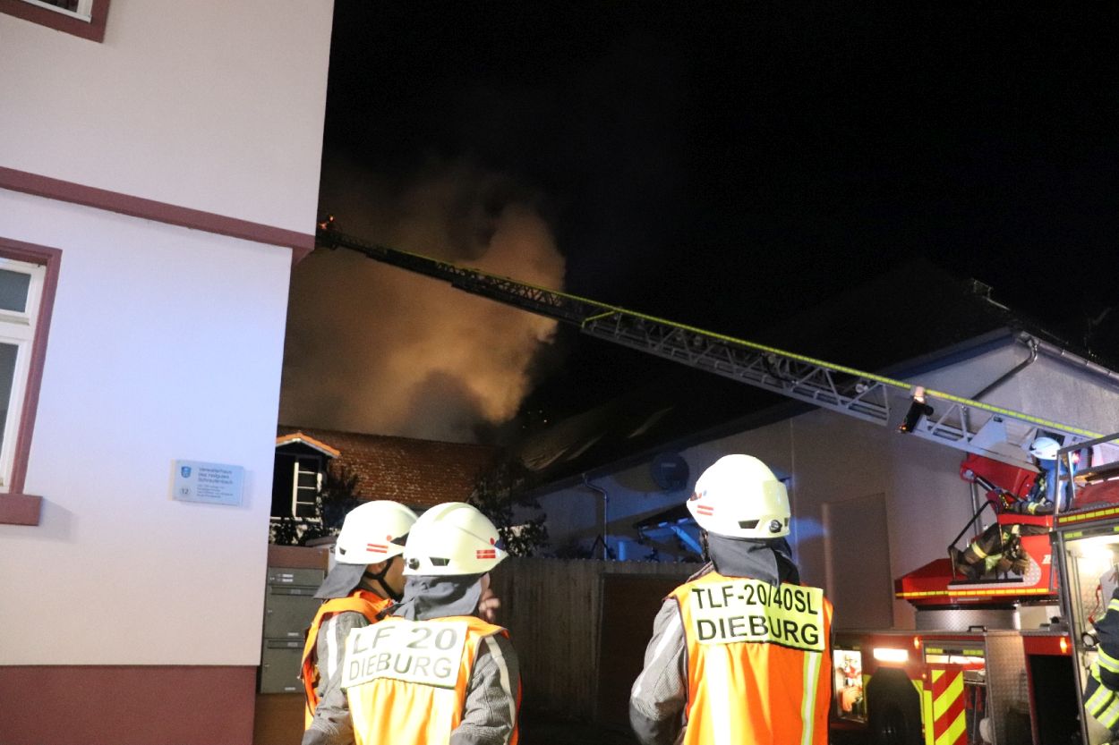 Im weiteren Einsatzverlauf stürzten Teile der Scheune ein, Einsatzkräfte wurden hierdurch nicht gefährdet. Durch die Feuerwehr wurde Löschwasser im Pendelverkehr und über eine 800 m Lange Schlauchstrecke an die Einsatzstelle gepumpt. Zur Lageerkundung war eine Spezielle Drohne im Einsatz. Durch den schnellen umfassenden Einsatz der Feuerwehren konnte ein übergreifen auf Wohngebäude glücklicherweise verhindert werden. Im weiteren Einsatzverlauf wurde umfassend nachalarmiert, hierdurch kamen ca. 130 Einsatzkräfte zum Einsatz. Eingesetzt waren die Feuerwehren Rossdorf, Rossdorf / Gundernhausen, Dieburg, Münster, Groß-Zimmern, Klein-Zimmern, Messel, Reinheim, Ober-Ramstadt und Pfungstadt. Weiterhin waren vor Ort drei Rettungswagen, ein Notarztfahrzeug und der Organisatorische Leiter Rettungsdienst. Wie auch die Landespolizei mit zahlreichen Kräften.